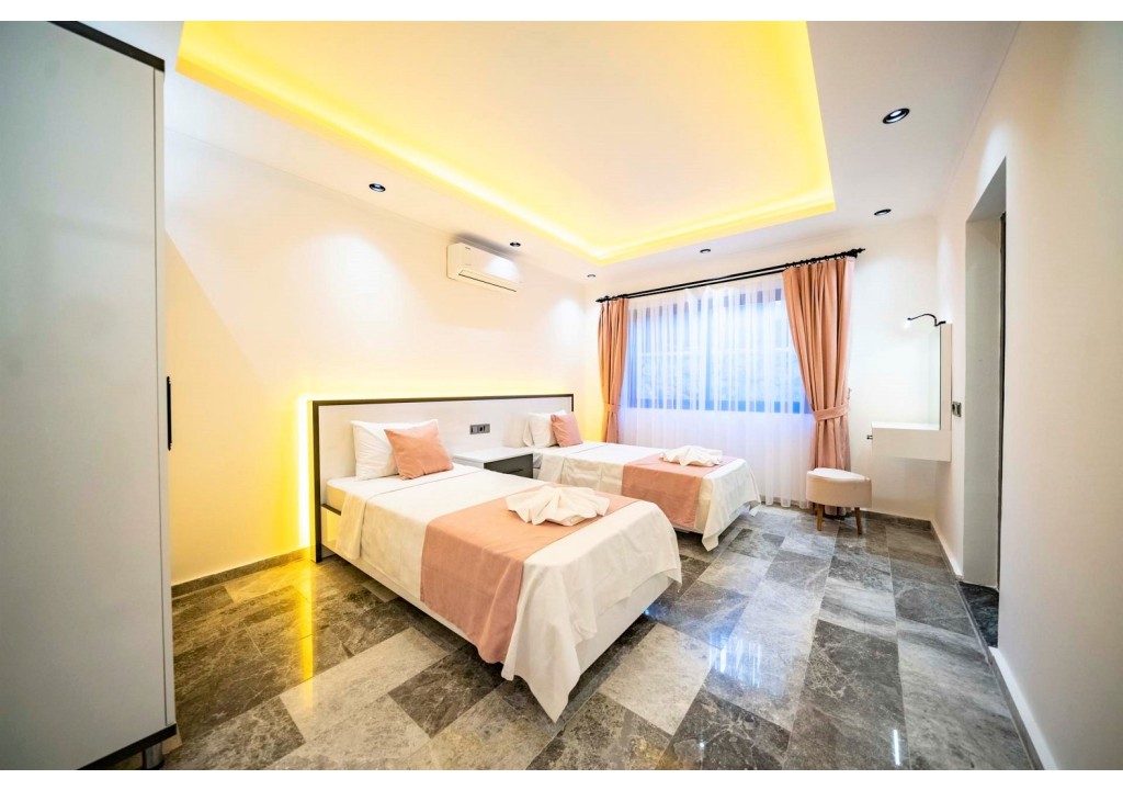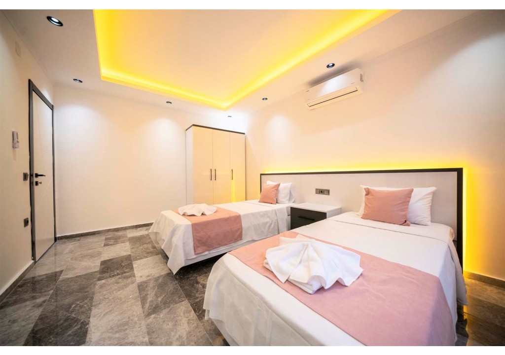 Detayları; İki adet tek kişilik yatak, makyaj masası, komodin, klima, elbise dolabı, banyo ve tuvalet yer almaktadır.