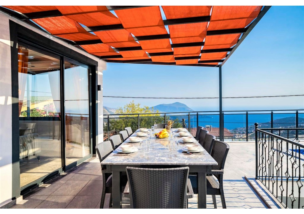 Detayları; Şezlonglar, güneş şemsiyeleri, yemek masası ve oturma grubu bulunmaktadır.