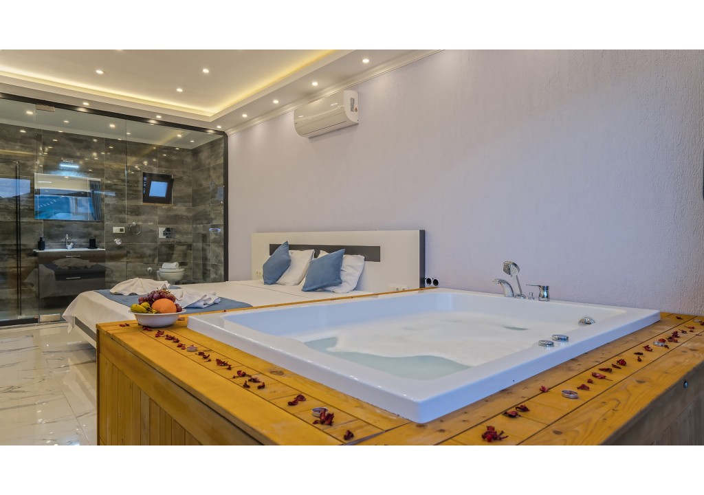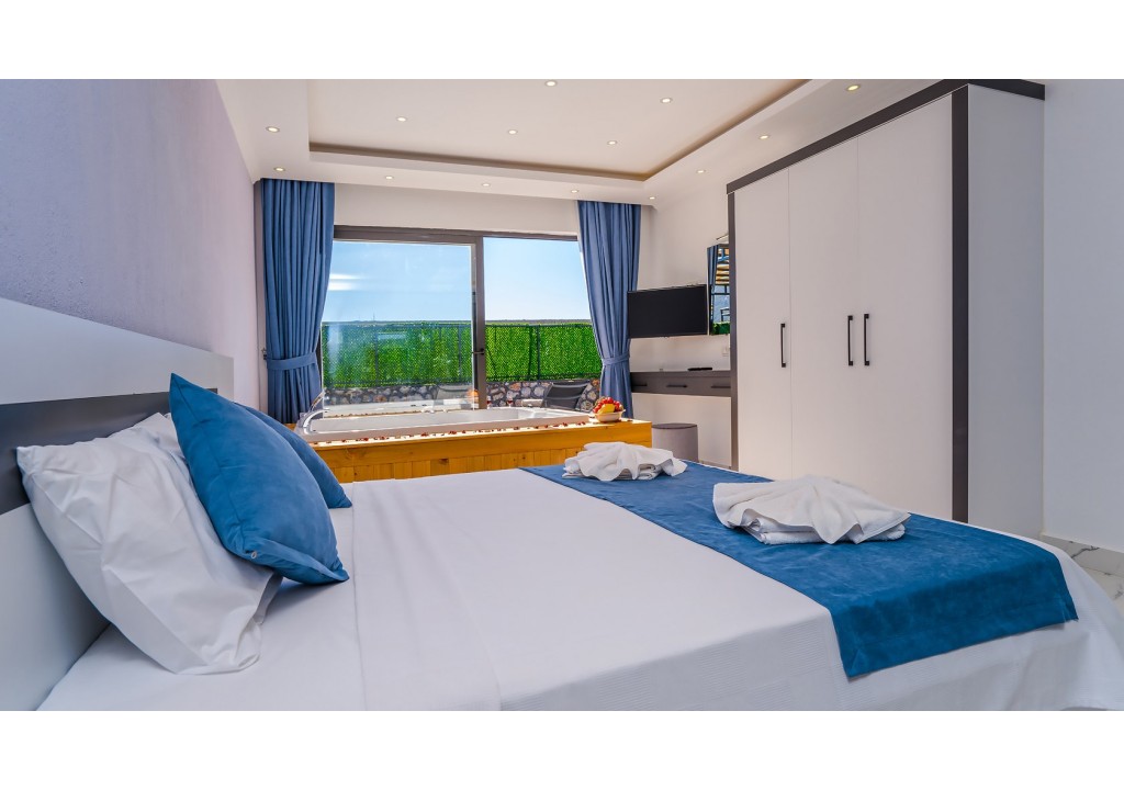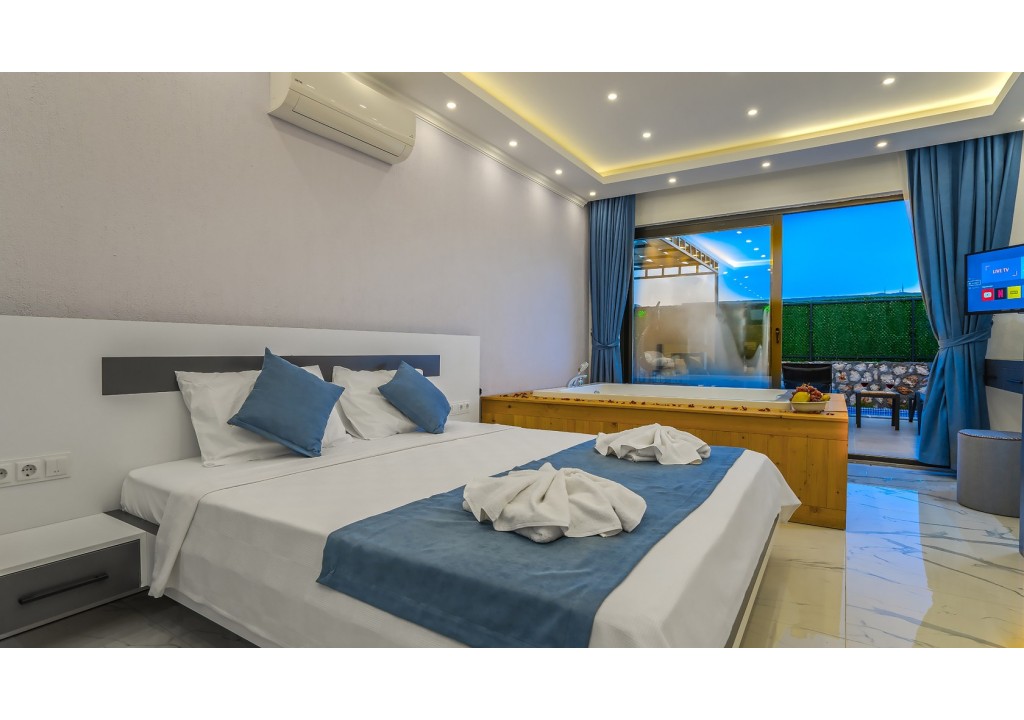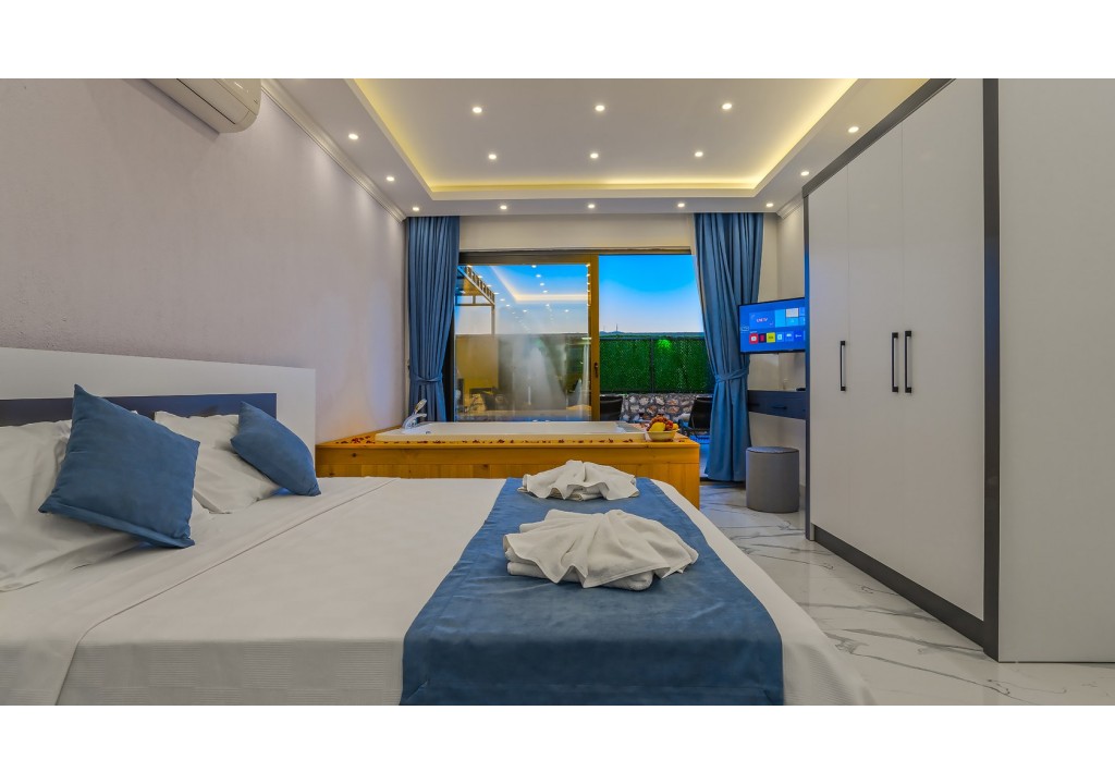Detayları; Çift kişilik yatak, makyaj masası, komidin, klima, elbise dolabı, jakuzi, banyo ve tuvalet bulunmaktadır.