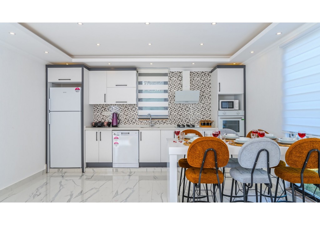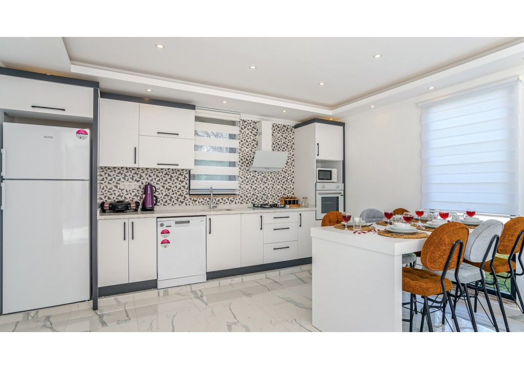 Detayları; Buz dolabı, Bulaşık makinesi, Fırın 4’lü Ocak (ankastre), Mikrodalga fırın, Elektrikli su ısıtıcı, su sebili, 4 kişilik yemek takımı, Tava, Tencereler, Çatal bıçak vb.