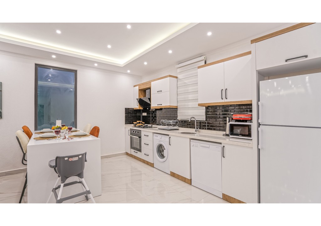 Detayları; Buzdolabı, Bulaşık makinesi, Fırın 4’lü Ocak (ankastre), Mikrodalga fırın, Elektrikli su ısıtıcı, 4 kişilik yemek takımı, Tava, Tencereler, Çatal bıçak vb.