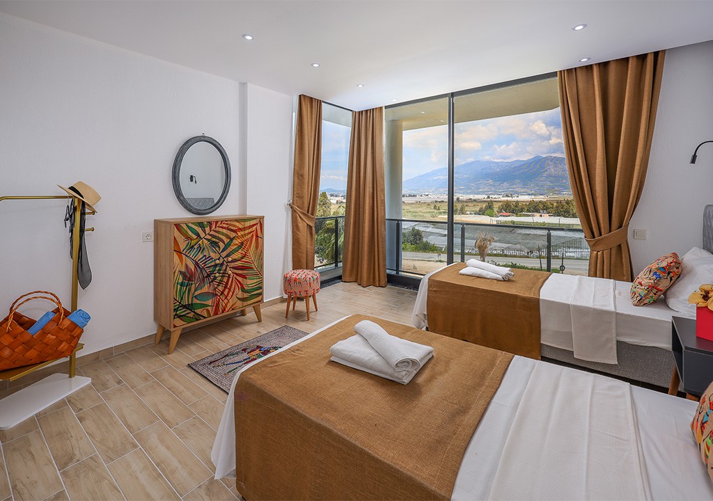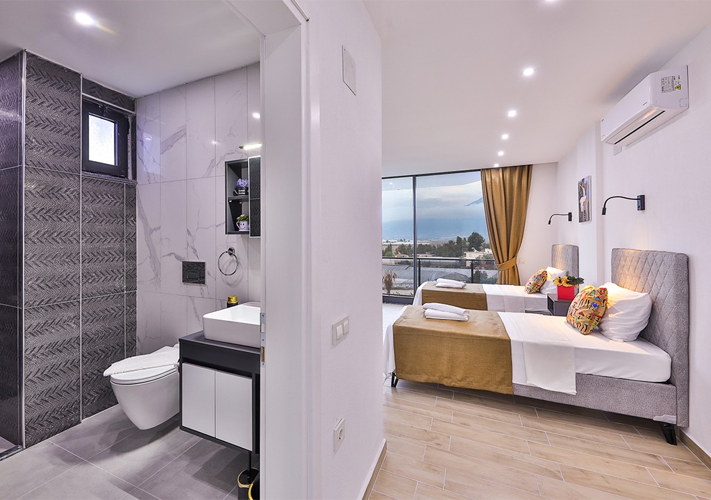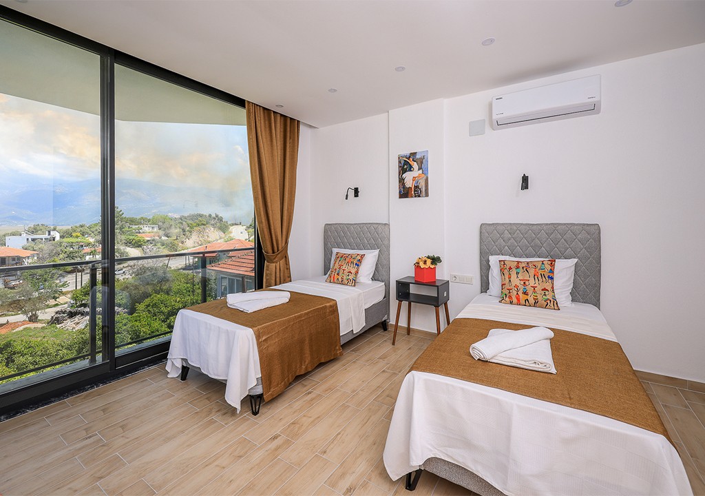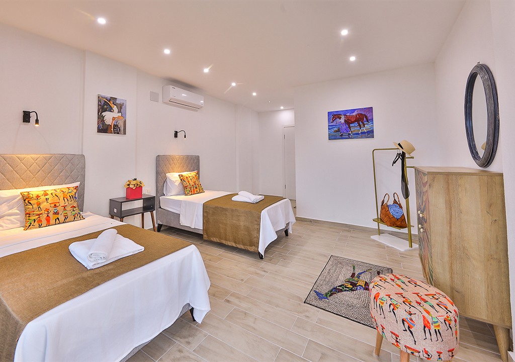 Detayları; İki adet tek kişilik yatak, makyaj masası, komidin, klima, elbise dolabı, banyo ve tuvalet bulunmaktadır.