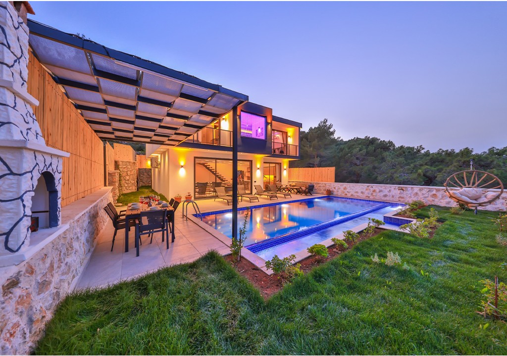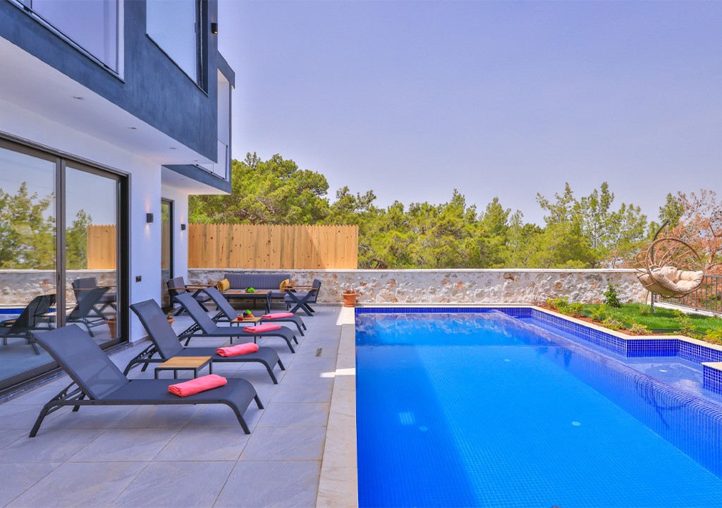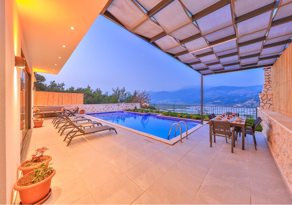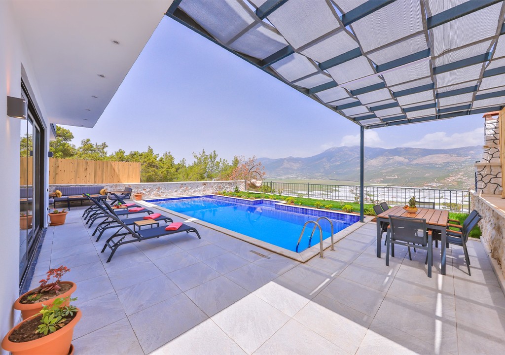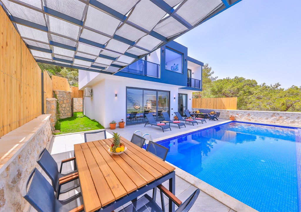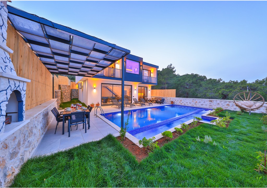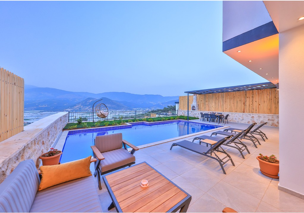 Kalkan’ın Yeşilköy mevkiinde yer alan Villa Peak 3 (KAL323), doğa içinde, şehir gürültüsünden uzak huzurlu bir tatil imkânı sunmaktadır. Villamız 2 yatak odasına sahip olup 5 kişi konaklama kapasitelidir. Bahçe ve havuz alanı korunaklıdır; dışarıdan görünmemektedir.