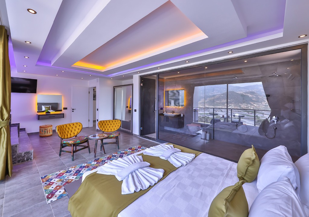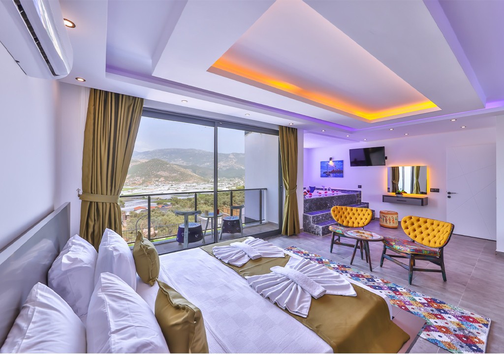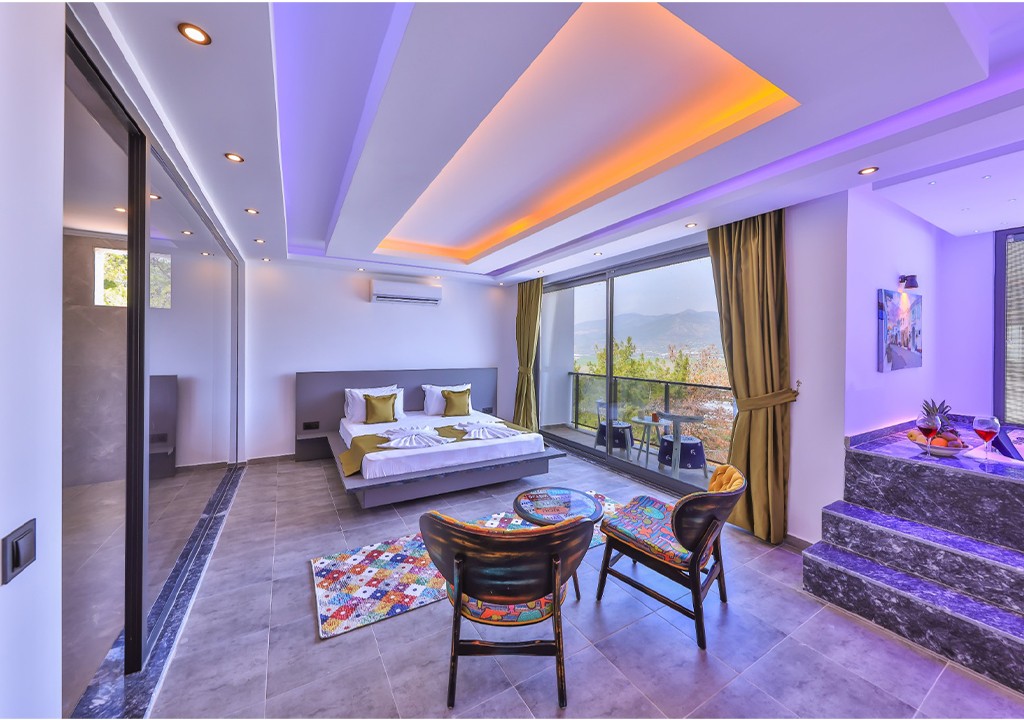 Detayları; : Çift kişilik yatak, klima, komodin, elbise dolabı, makyaj masası, jakuzi, banyo ve tuvalet bulunmaktadır.