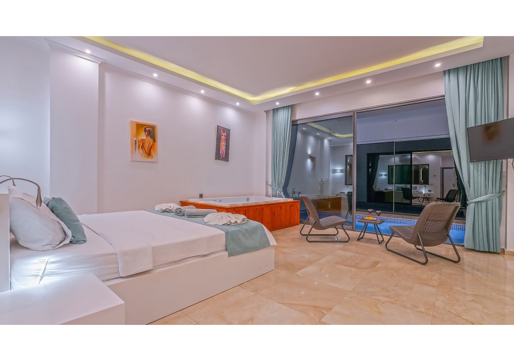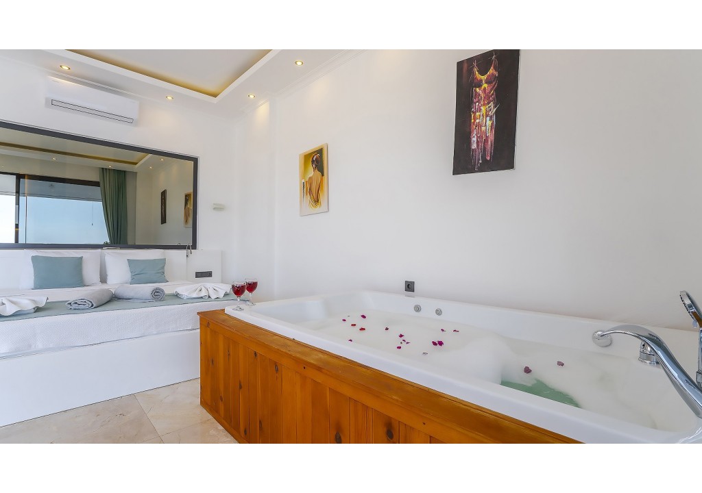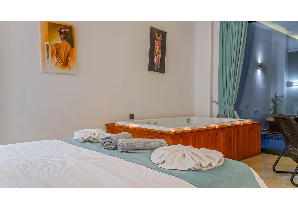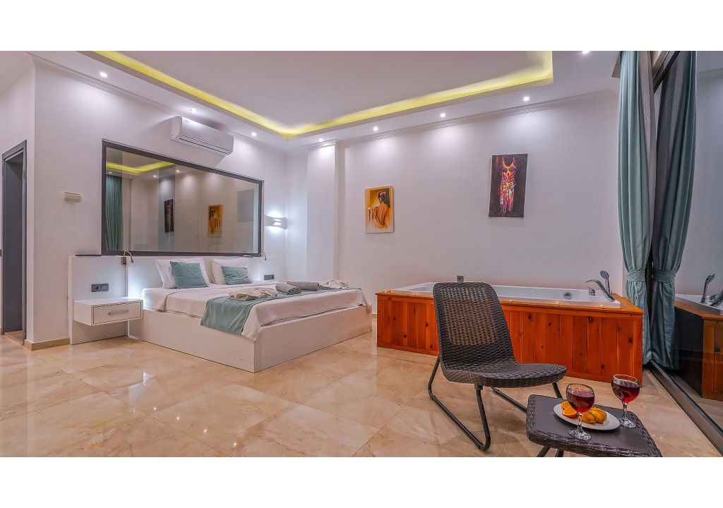 Detayları; Çift kişilik yatak, makyaj masası, komidin, klima, elbise dolabı, jakuzi, banyo ve tuvalet bulunmaktadır.