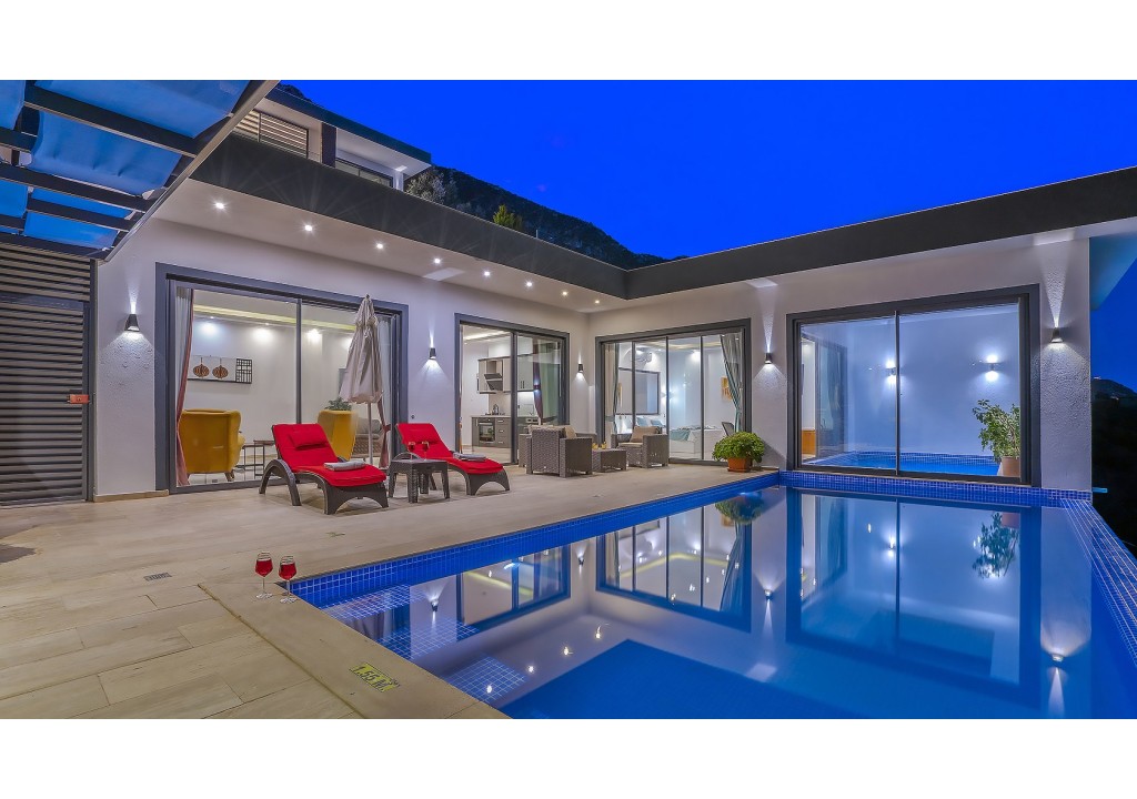 Kalkan’ın Kördere mevkiinde yer alan Villa Rima; tek yatak odalı, havuz bölgesi dışarıdan görünmeyen, muhafazakâr bir villadır. Deniz manzarası ve kapalı ısıtmalı havuzu ile konforlu bir konaklama sunan villa, sakin ve huzurlu bir tatil geçirmek isteyen misafirler için ideal bir seçenektir.
