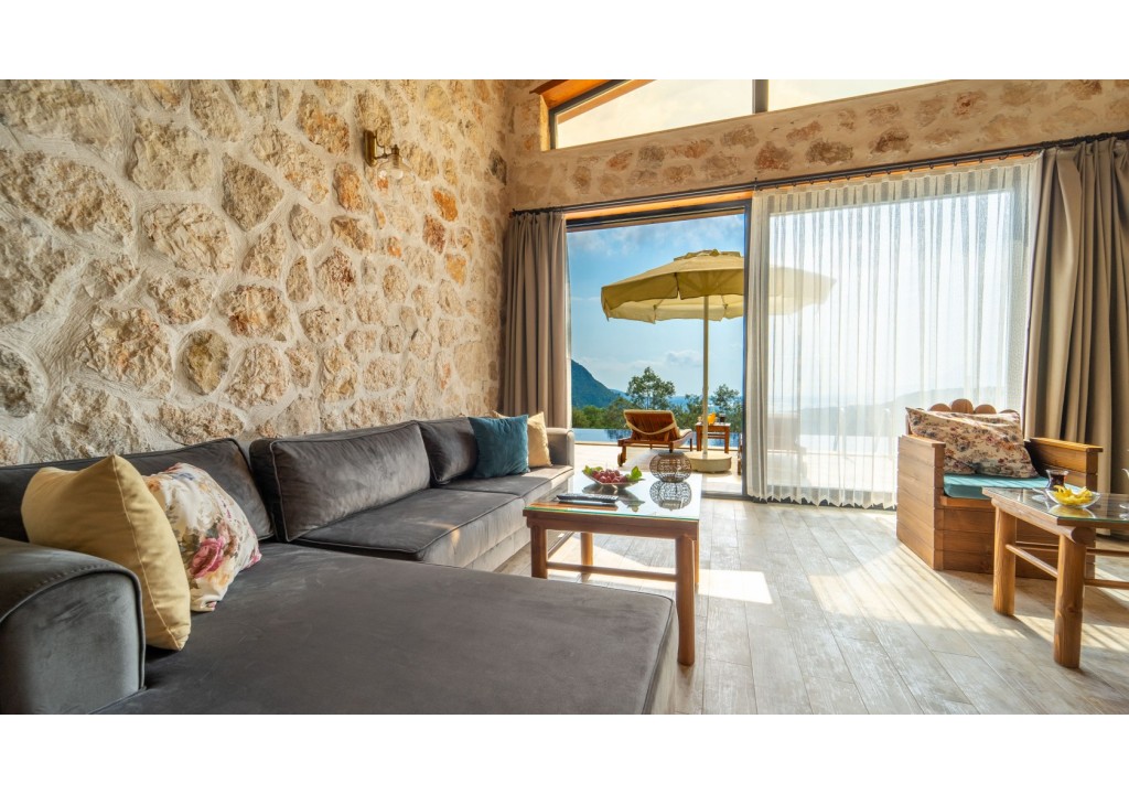 Detayları; Havuz deniz ve doğa manzaralı salonda , oturma grubu, uydu TV (LCD), kablosuz internet, klima, bulunmaktadır. Salondan havuz terasına direkt çıkış bulunmaktadır.