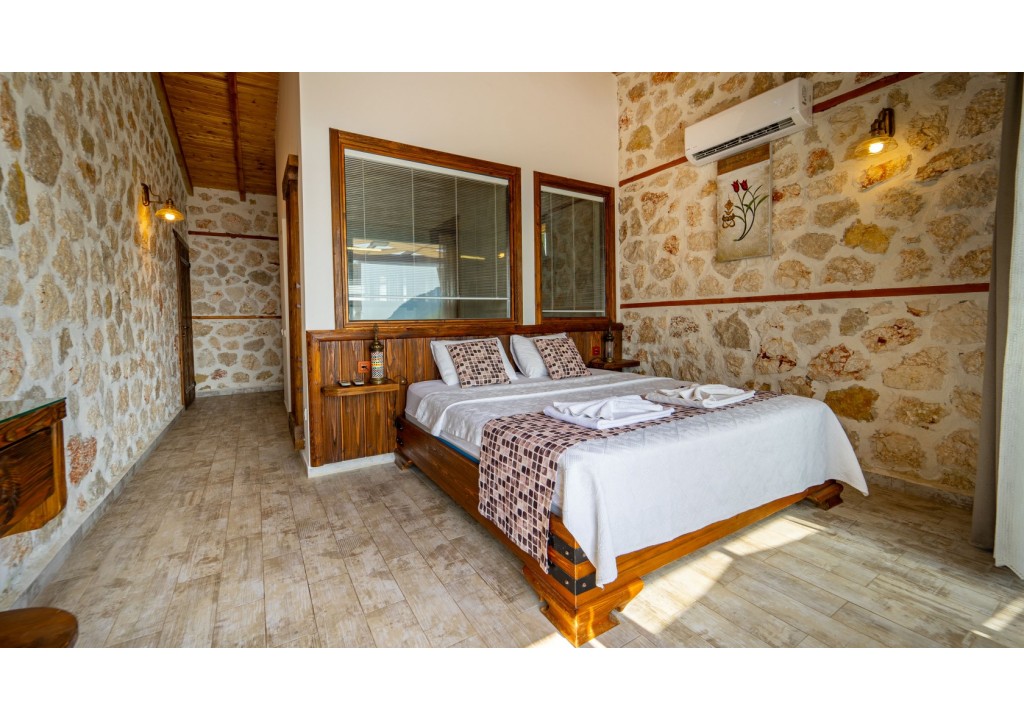 Detayları; Çift kişilik yatak, komodin, klima, elbise dolabı, banyo ve tuvalet bulunmaktadır.