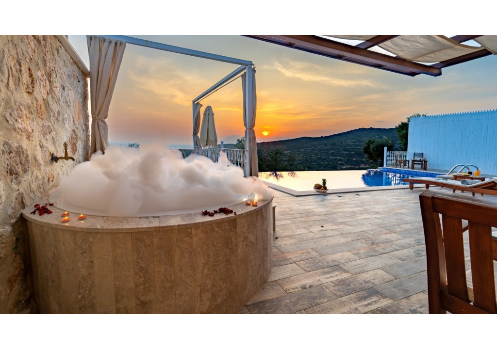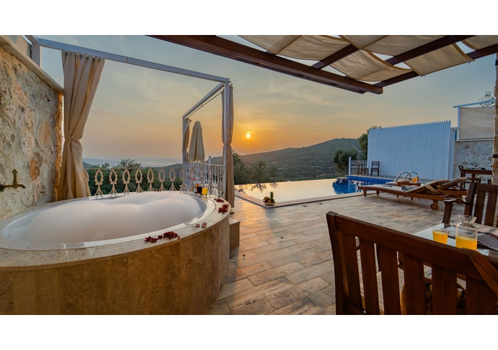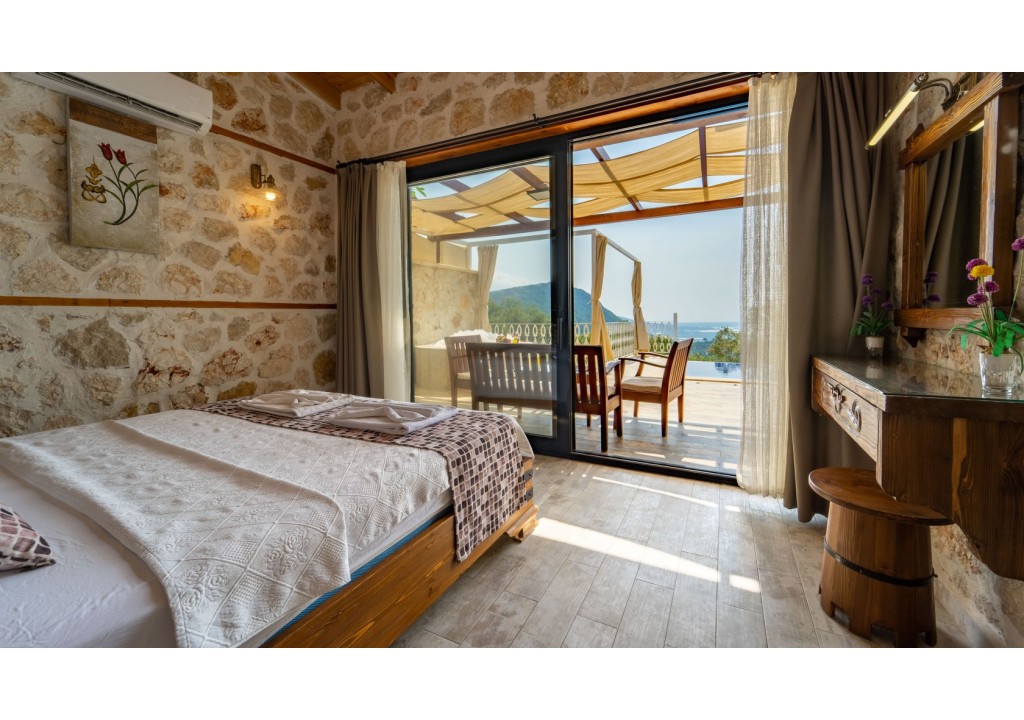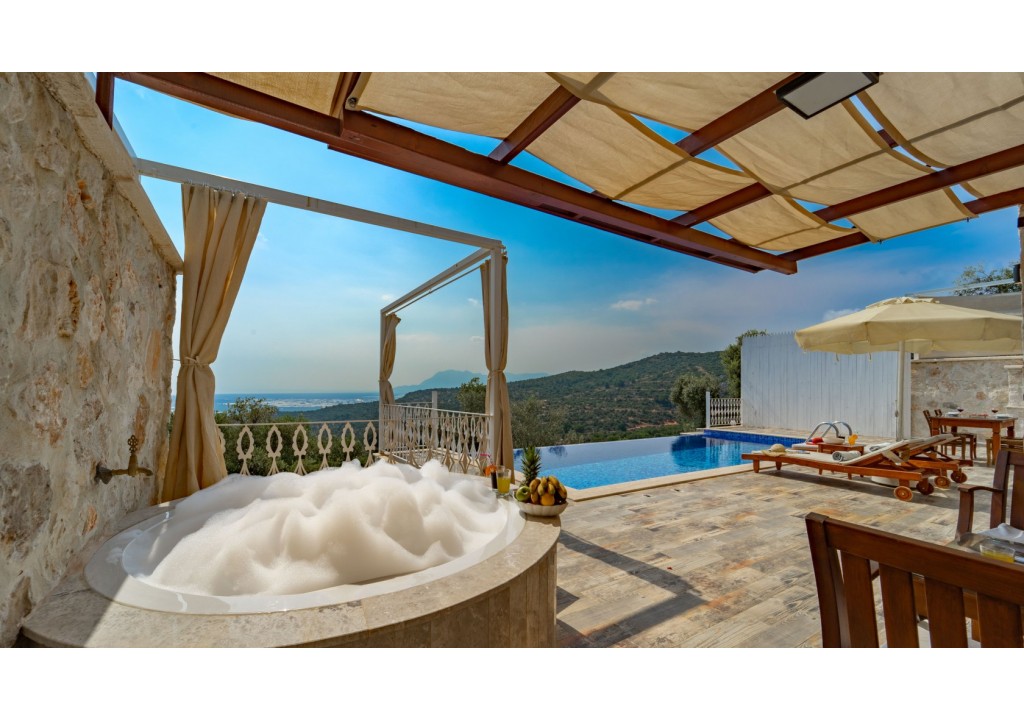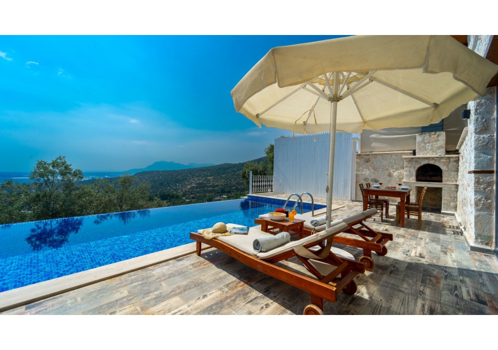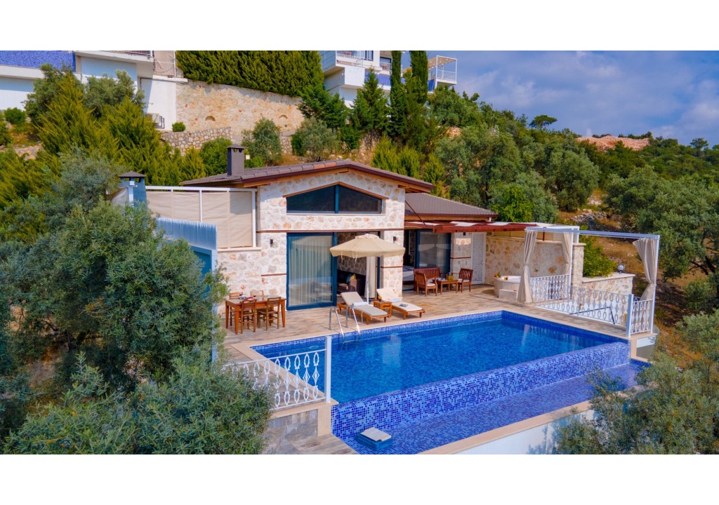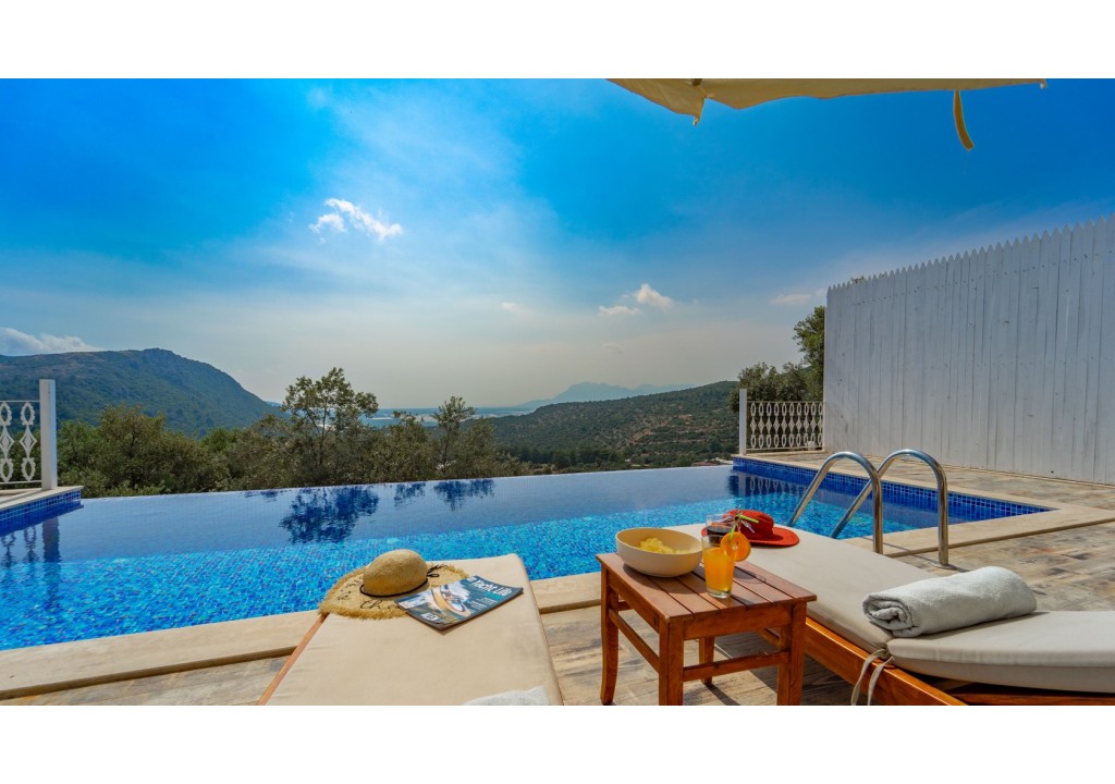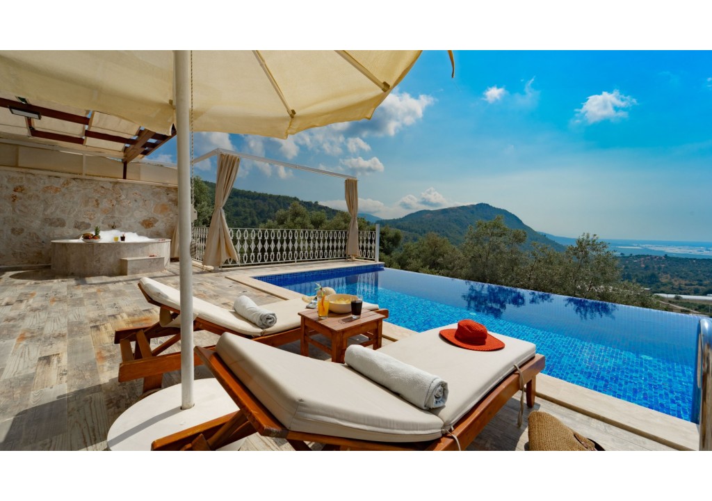 Villa Selen, Kalkan’ın Üzümlü Köyü’nde yer almaktadır. Doğa manzarasını kesintisiz bir şekilde izleyebileceğiniz bu villa balayı çiftleri için ideal bir tatil seçeneğidir.