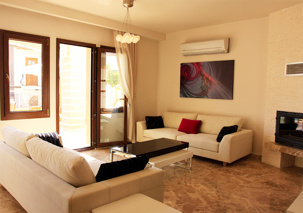 Detayları; Oturma grubu, Uydu TV (LCD), Klima, yemek masası, Havuz terasına çıkış,