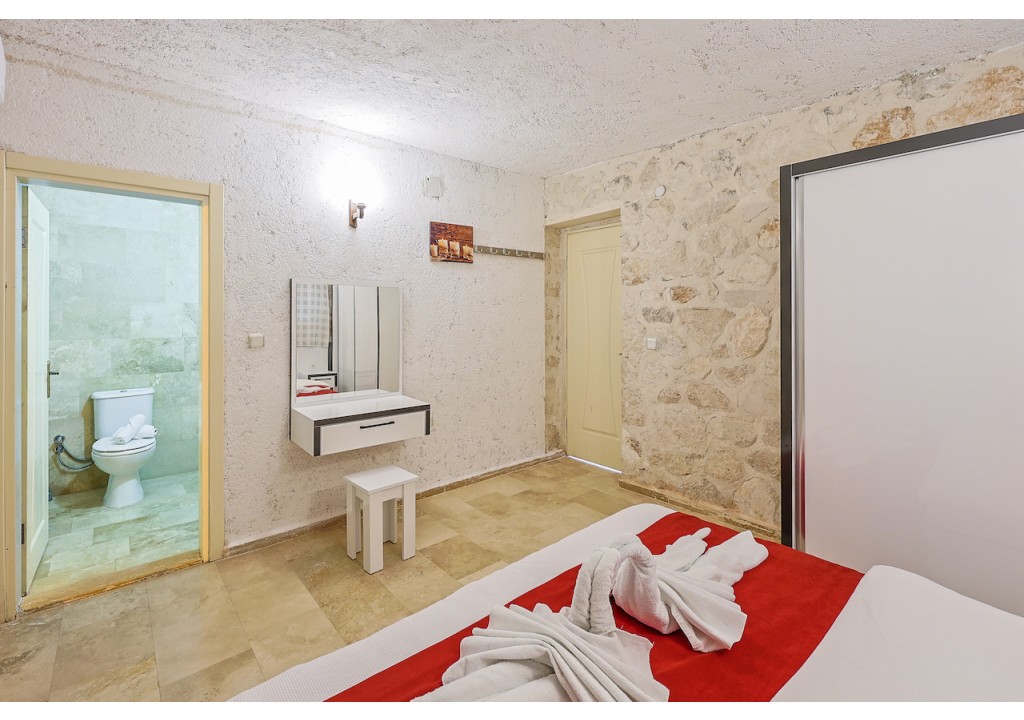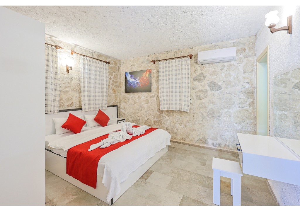 Detayları; Çift kişilik yatak, makyaj masası, komidin, klima, elbise dolabı, banyo ve tuvalet bulunmaktadır.