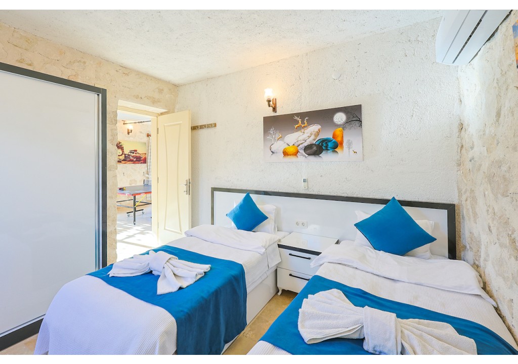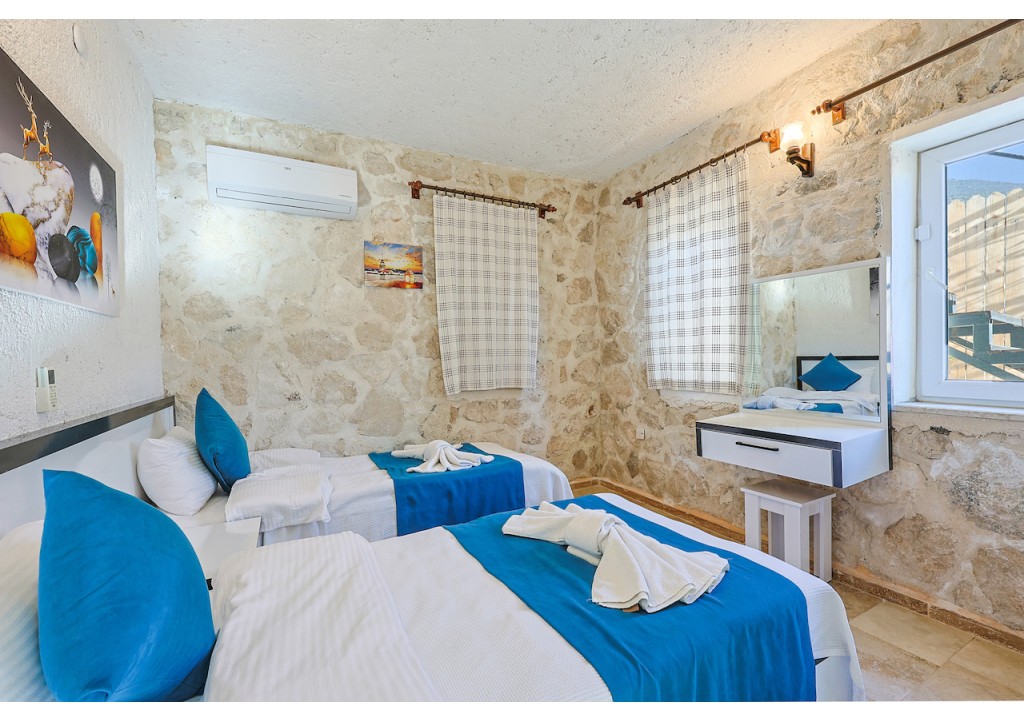 Detayları; İki adet tek kişilik yatak, makyaj masası, komidin, klima, elbise dolabı, banyo ve tuvalet bulunmaktadır.