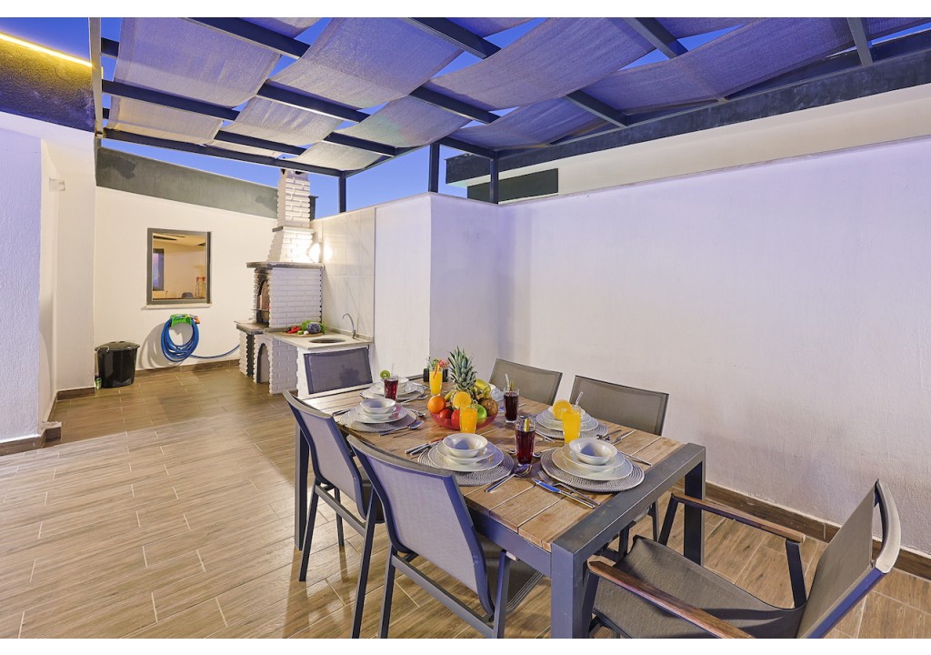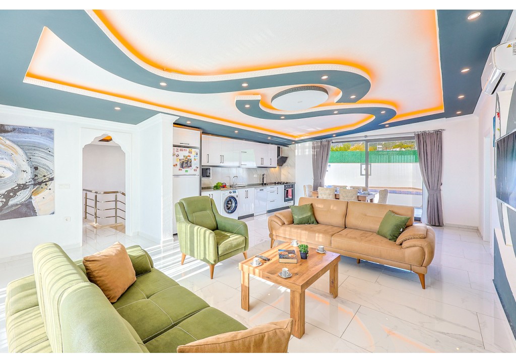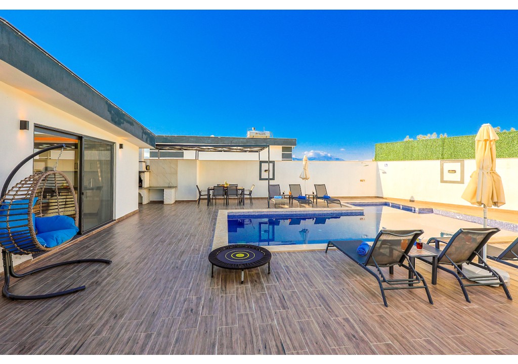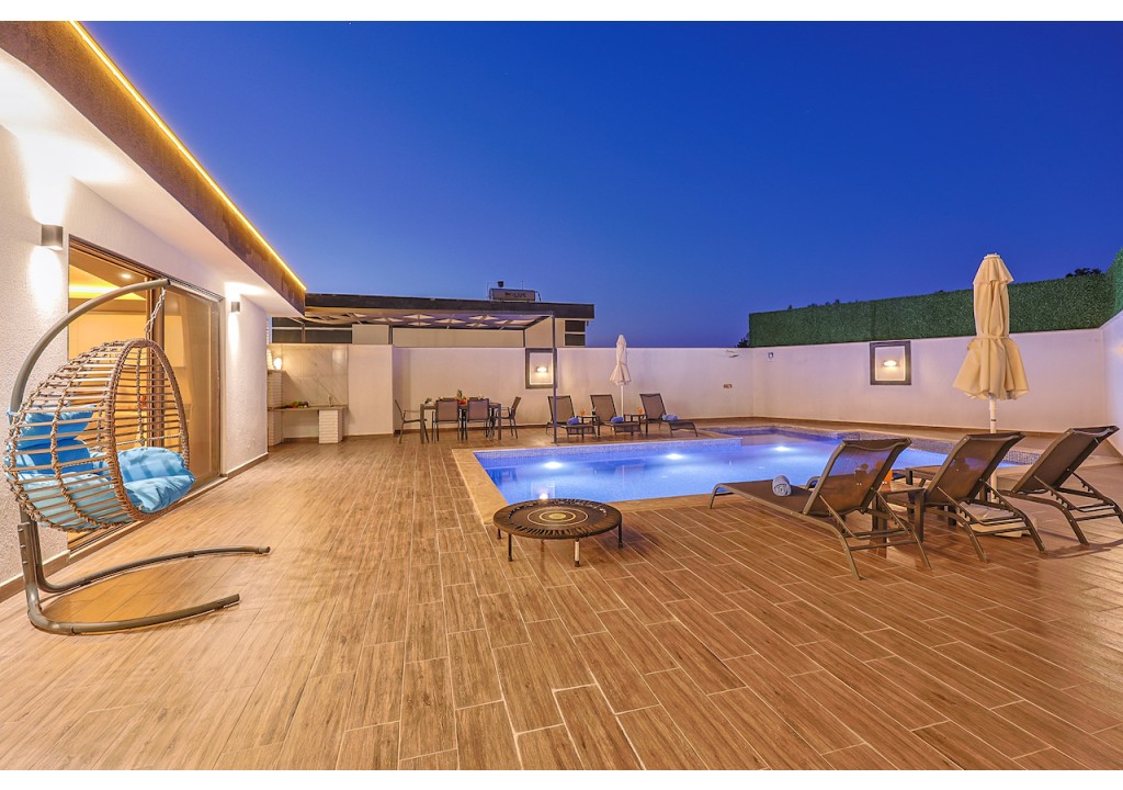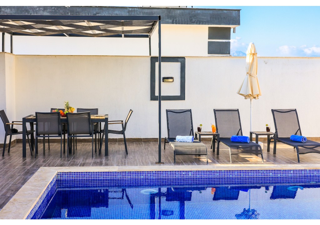Detayları; Oturma grubu, Uydu TV (LCD), Klima, 4 kişilik yemek masası, Havuz terasına çıkış,