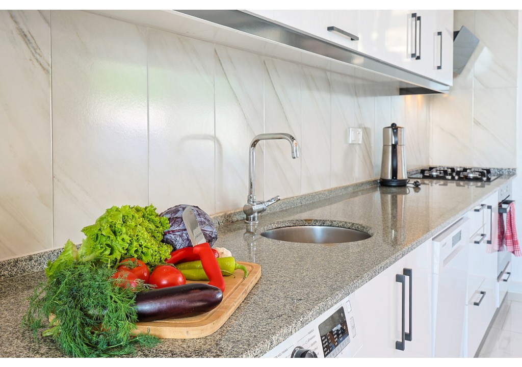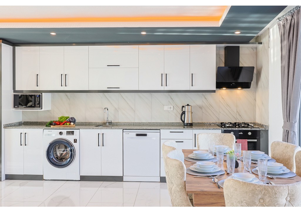 Detayları; Buz dolabı, Bulaşık makinesi, Fırın 4’lü Ocak (ankastre), Mikrodalga fırın, Elektrikli su ısıtıcı, 4 kişilik yemek takımı, Tava, Tencereler, Çatal bıçak vb.
