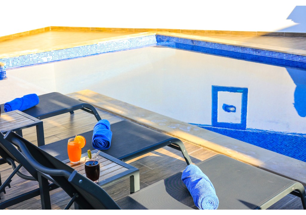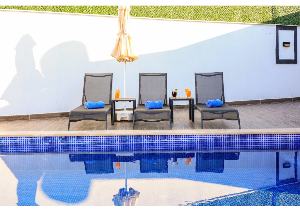 HAVUZ KATI TERASI: Güneşlenme alanı, özel havuz.
