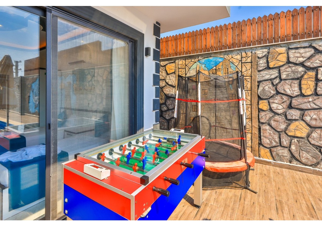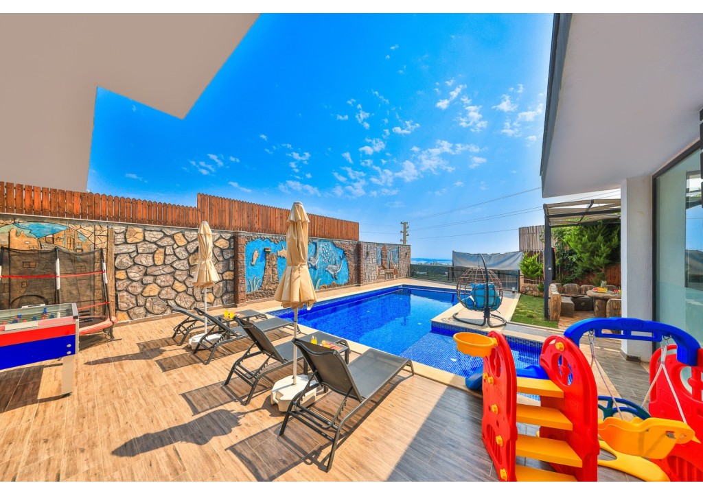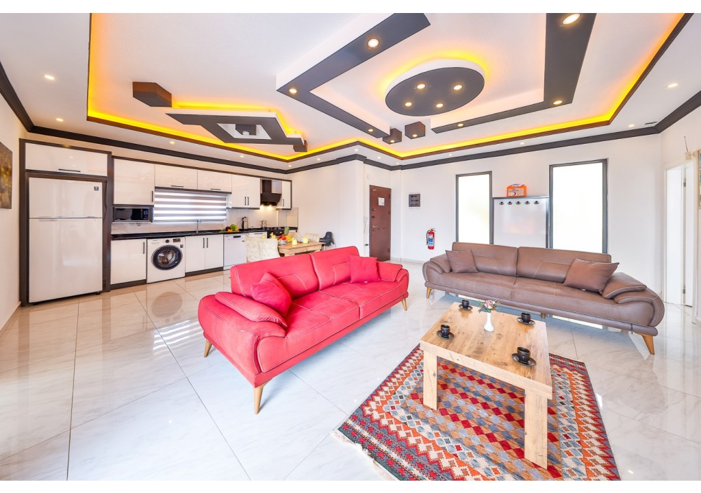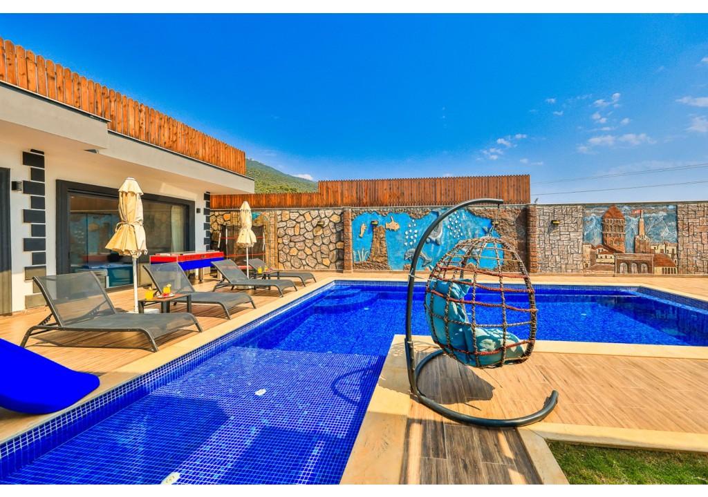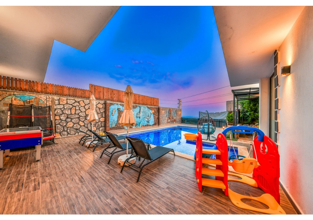 Detayları; Oturma grubu, Uydu TV (LCD), Klima, 4 kişilik yemek masası, Havuz terasına çıkış,