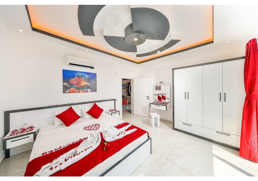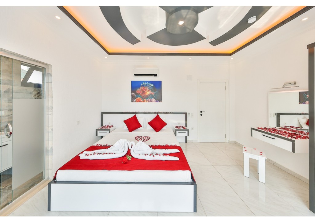 Detayları; Çift kişilik yatak, makyaj masası, komidin, klima, elbise dolabı, jakuzi, banyo ve tuvalet bulunmaktadır.