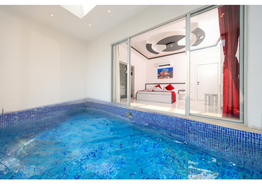Villamızın kapalı havuzundaki ısıtma sistemi günlük 1.500 TL karşılığında aktif edilmektedir. Misafirlerimizin ısıtma taleplerini en az 3 gün önceden iletmeleri gerekmektedir. Havuz suyu sıcaklığı 27–30 °C aralığına ulaşmaktadır.