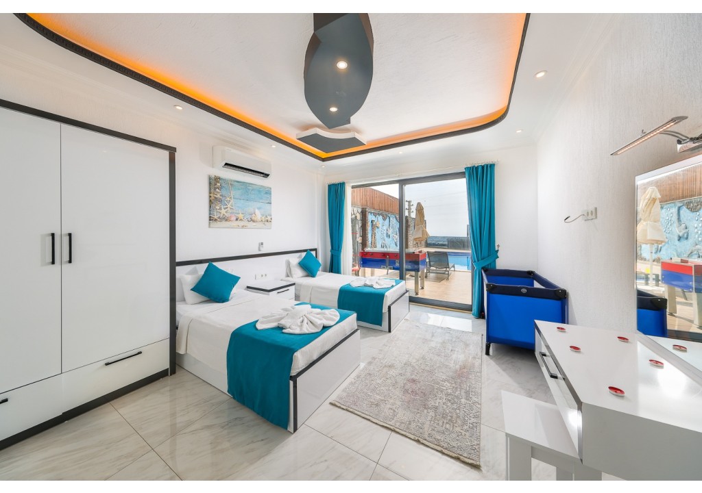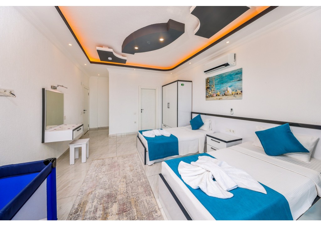 Detayları; İki adet tek kişilik yatak, makyaj masası, komidin, klima, elbise dolabı, banyo ve tuvalet bulunmaktadır.