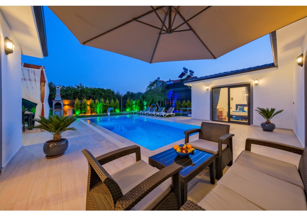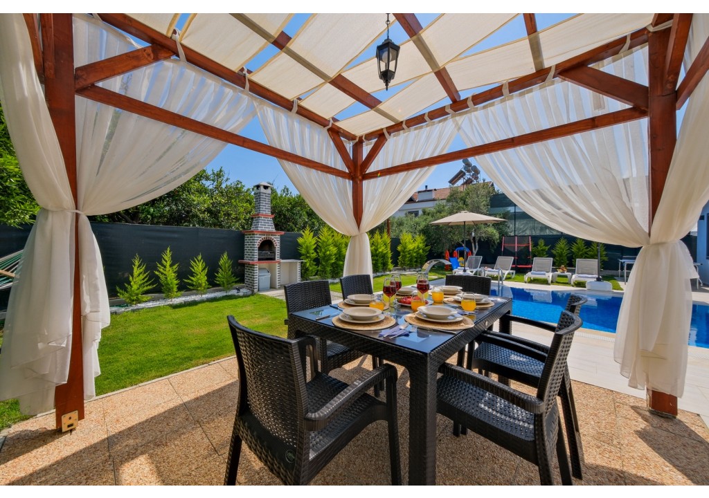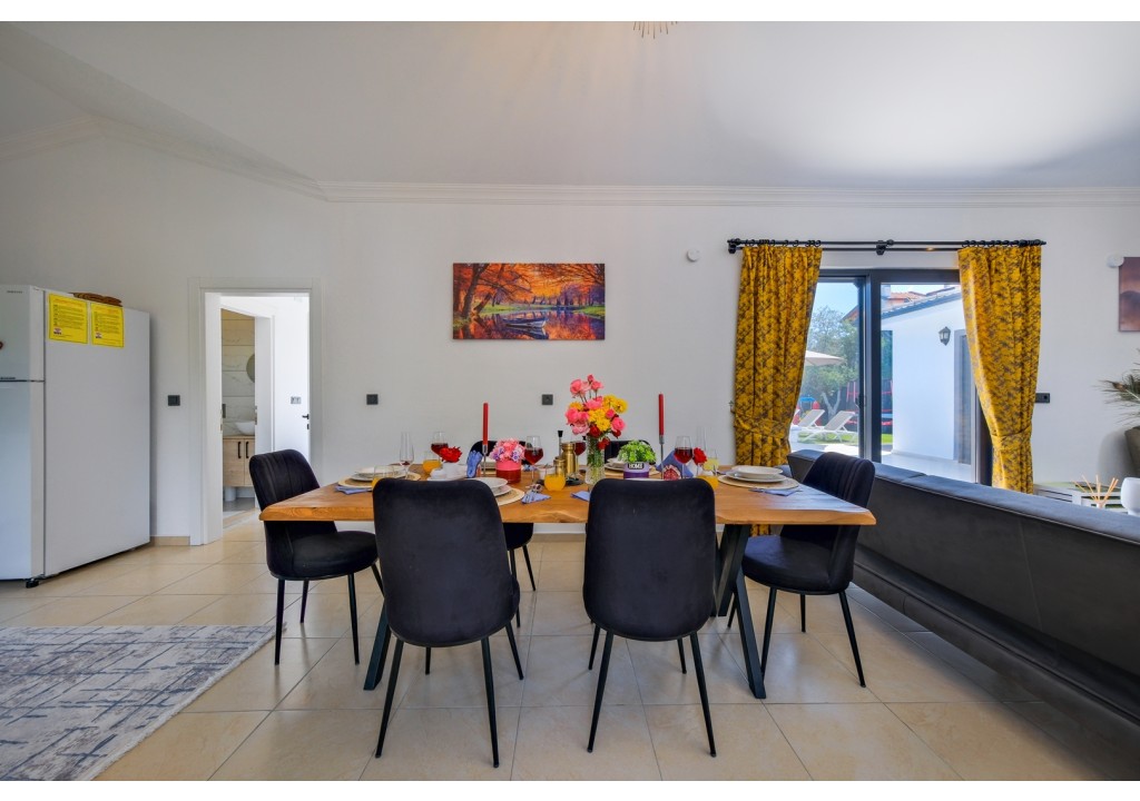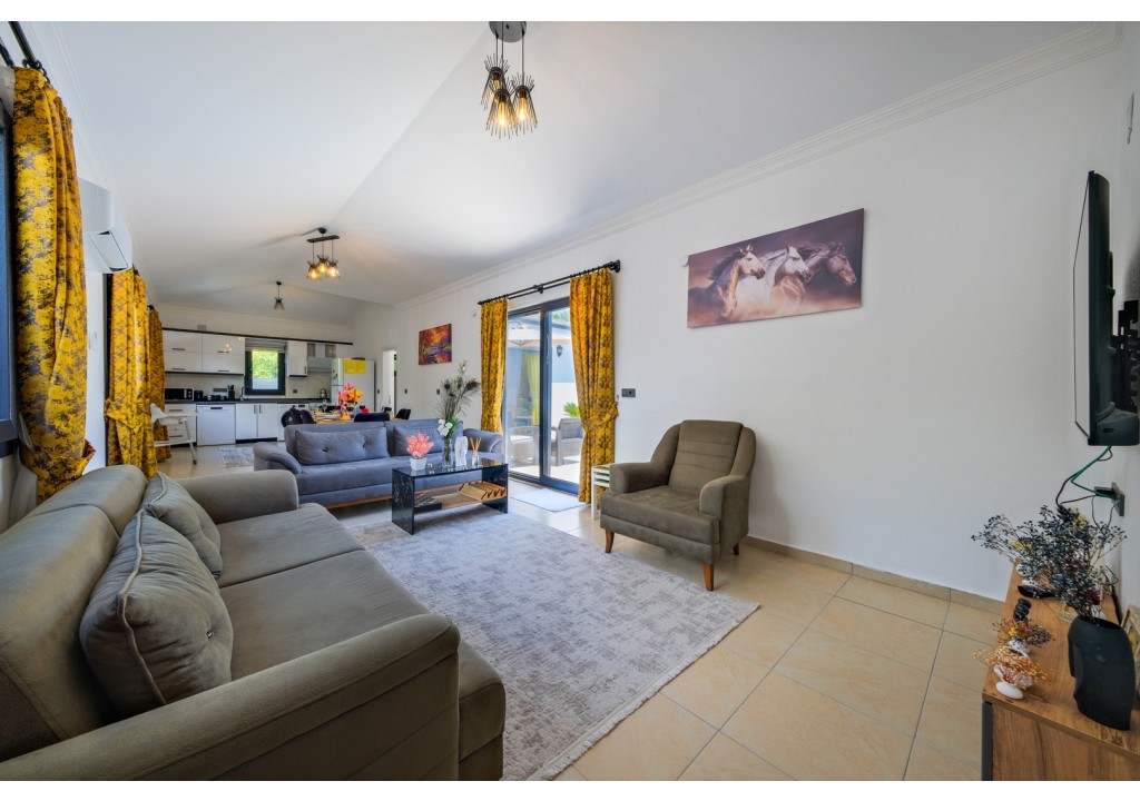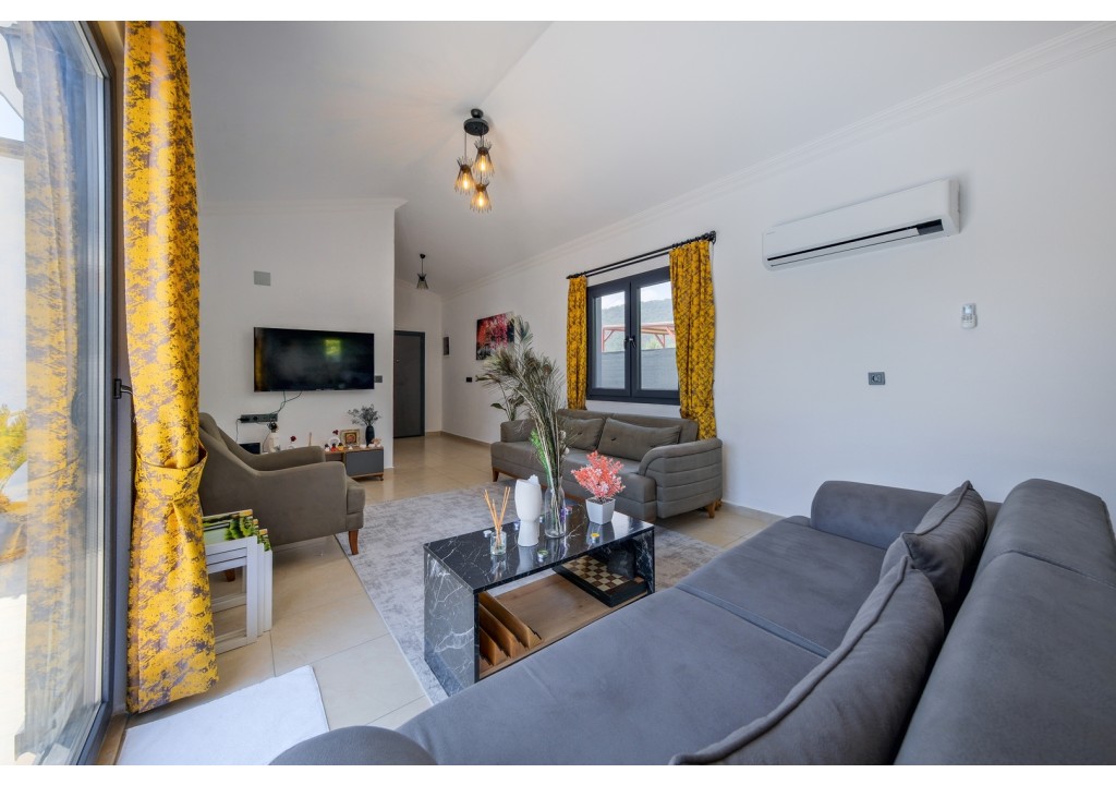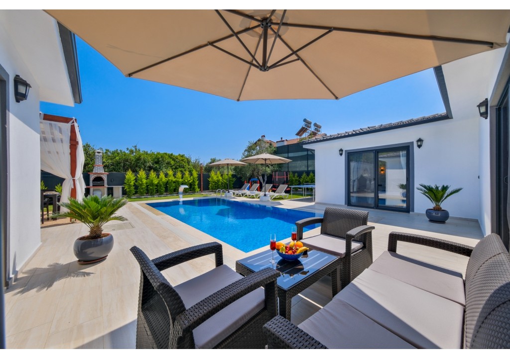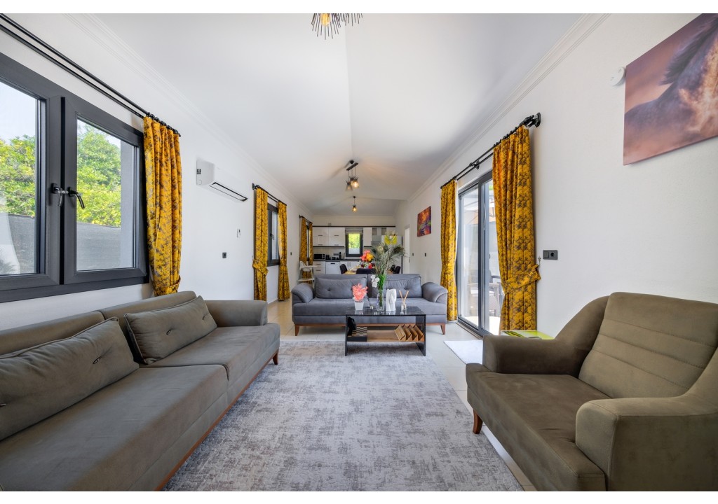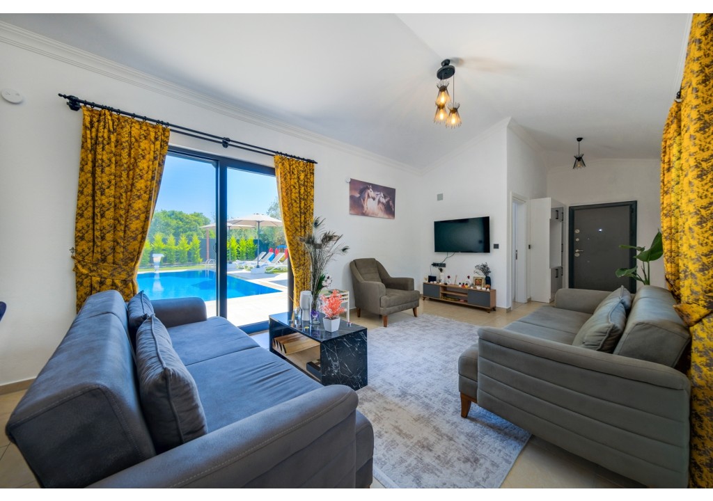 Detayları; Oturma grubu, Uydu TV (LCD), Klima, 4 kişilik yemek masası, Havuz terasına çıkış,