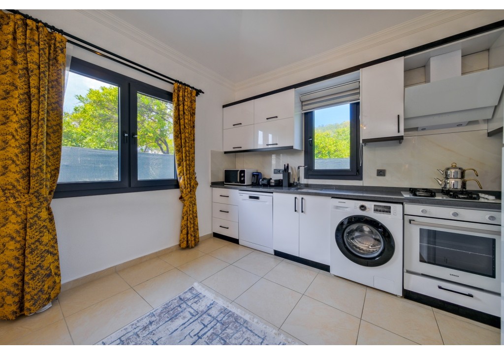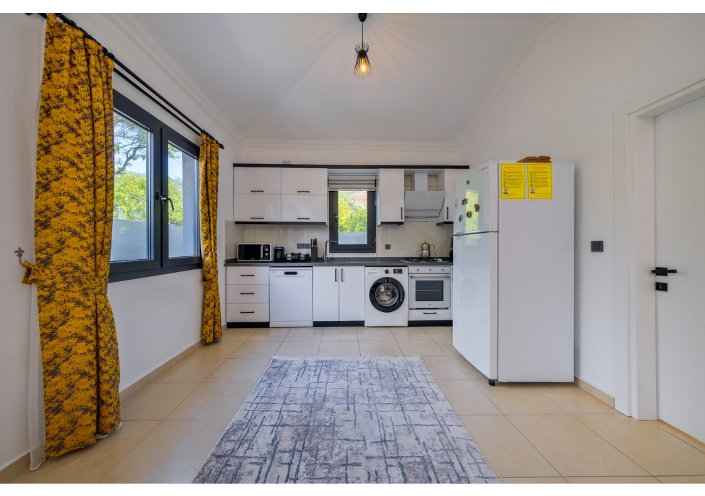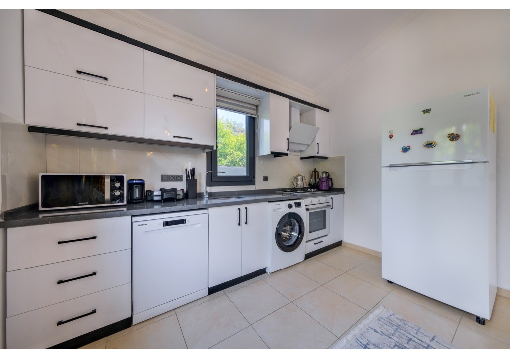 Detayları; Buzdolabı, Bulaşık makinesi, Fırın 4’lü Ocak (ankastre), Mikrodalga fırın, Elektrikli su ısıtıcı, 4 kişilik yemek takımı, Tava, Tencereler, Çatal bıçak vb.