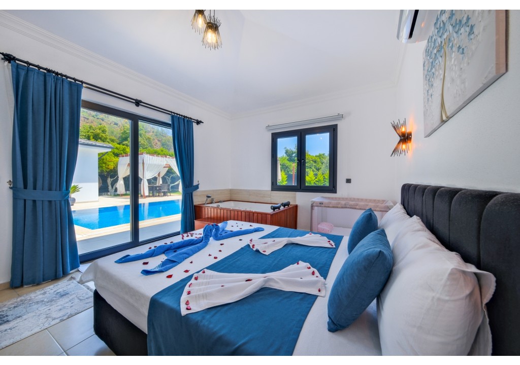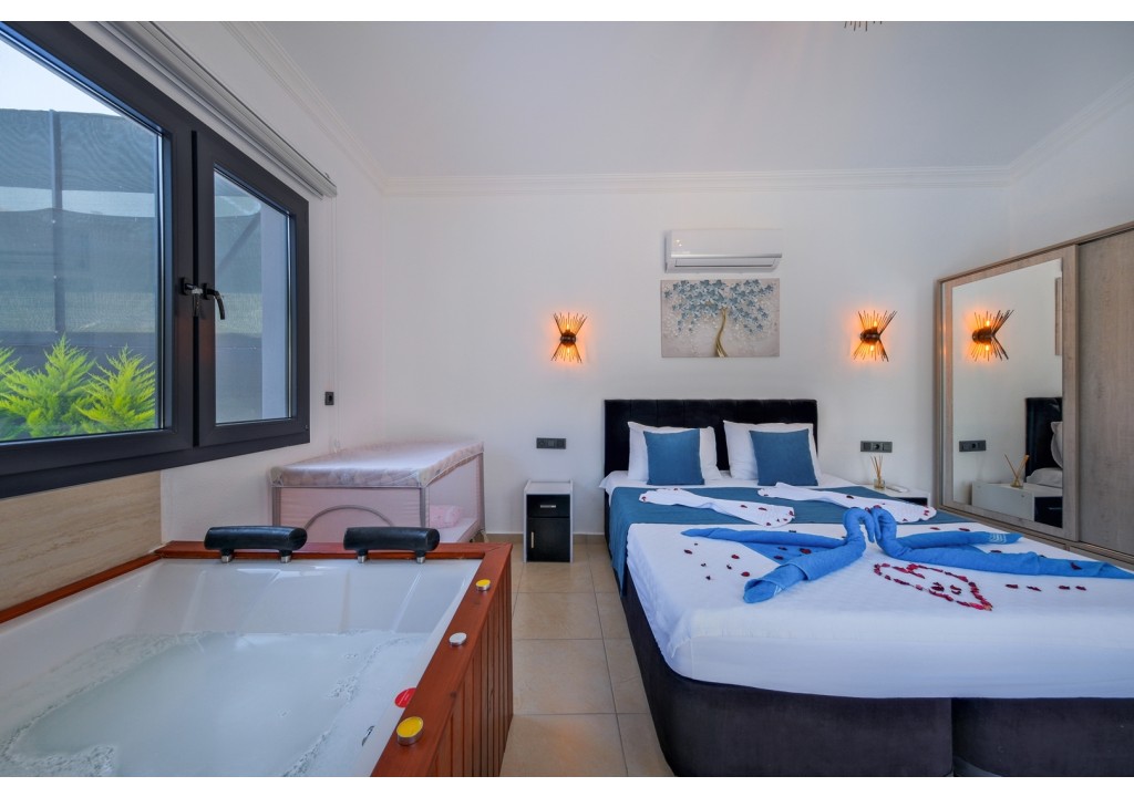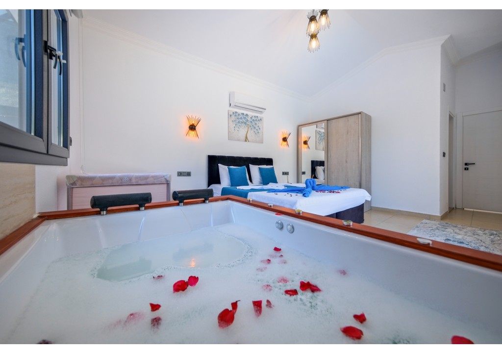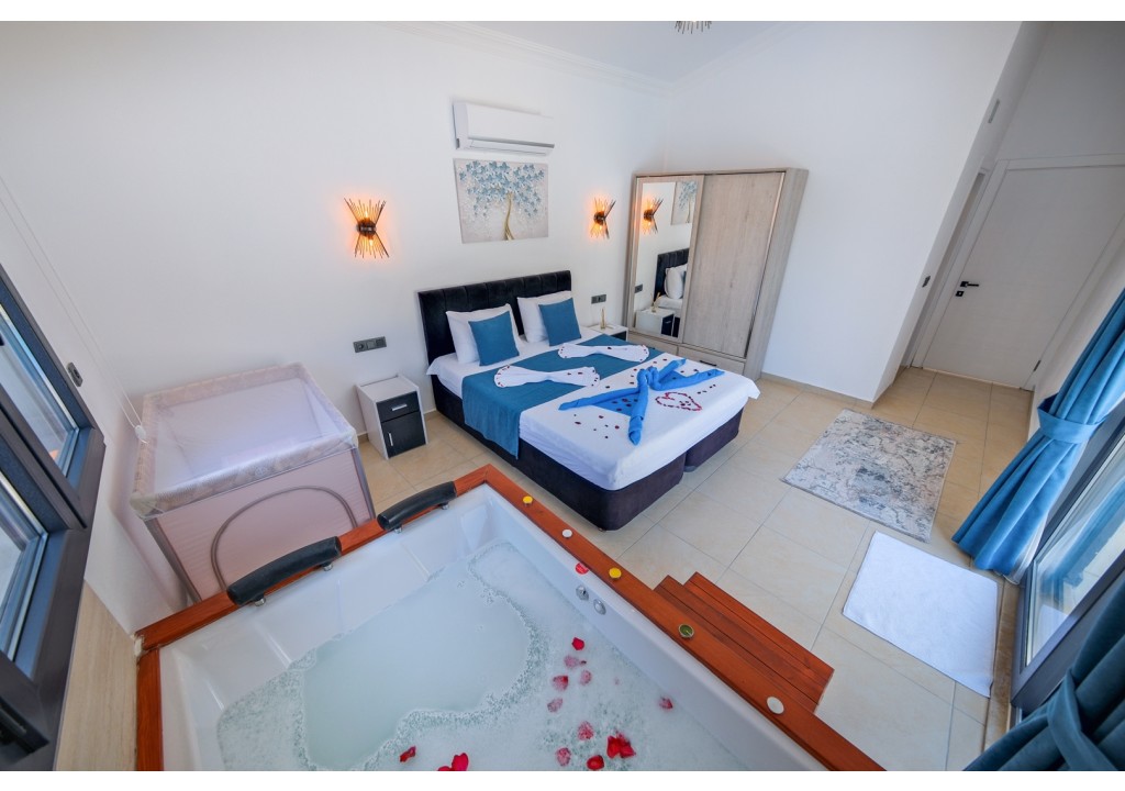 Detayları; Çift kişilik yatak, makyaj masası, komodin, klima, elbise dolabı, jakuzi, banyo ve tuvalet bulunmaktadır.