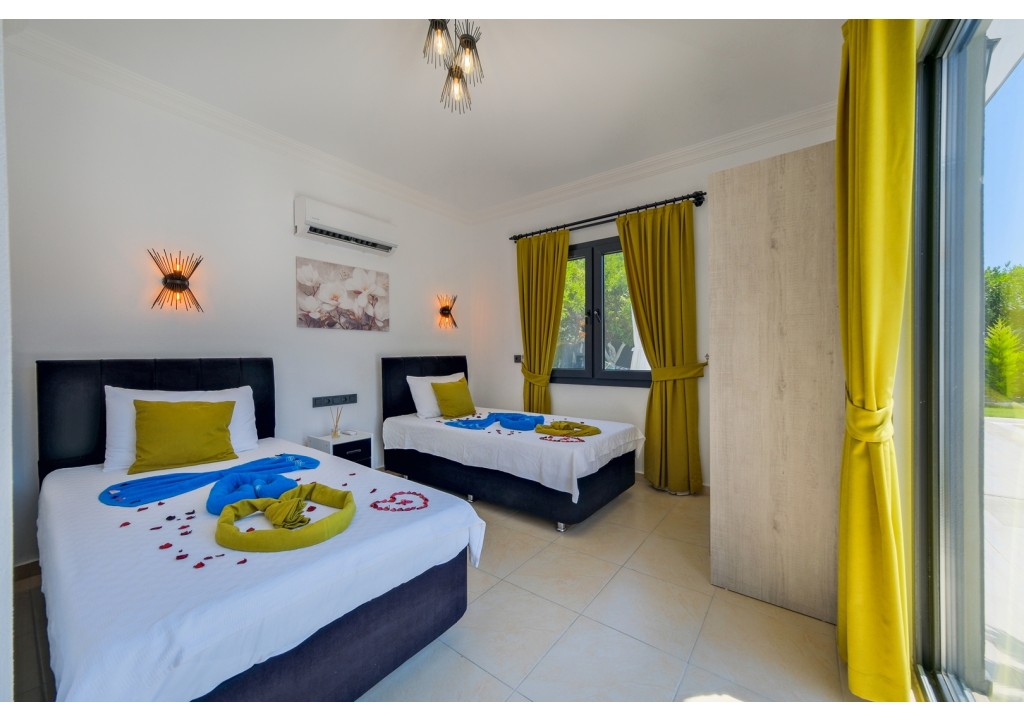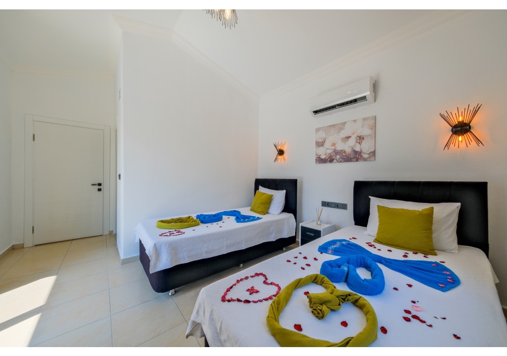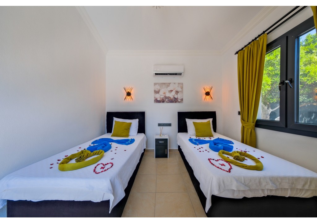 Detayları; İki adet tek kişilik yatak, makyaj masası, komodin, klima, elbise dolabı, banyo ve tuvalet bulunmaktadır.