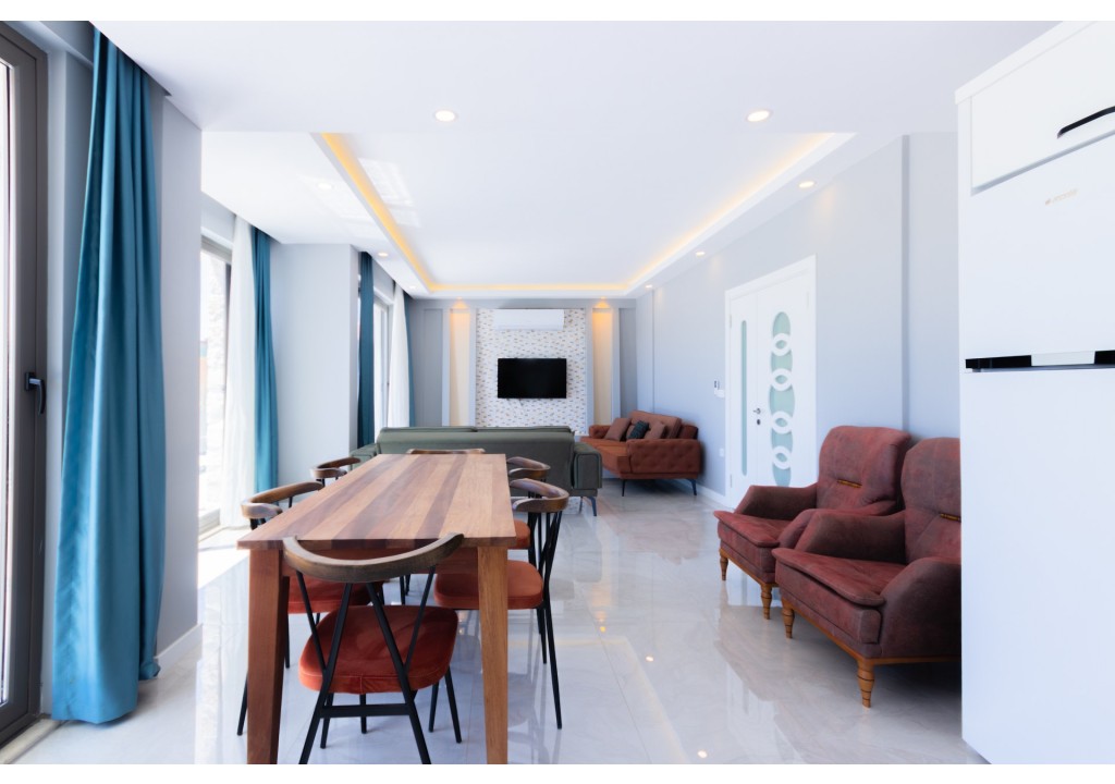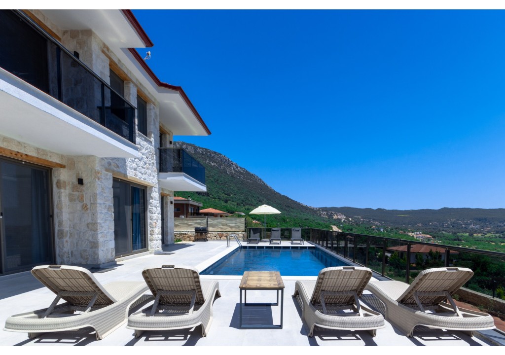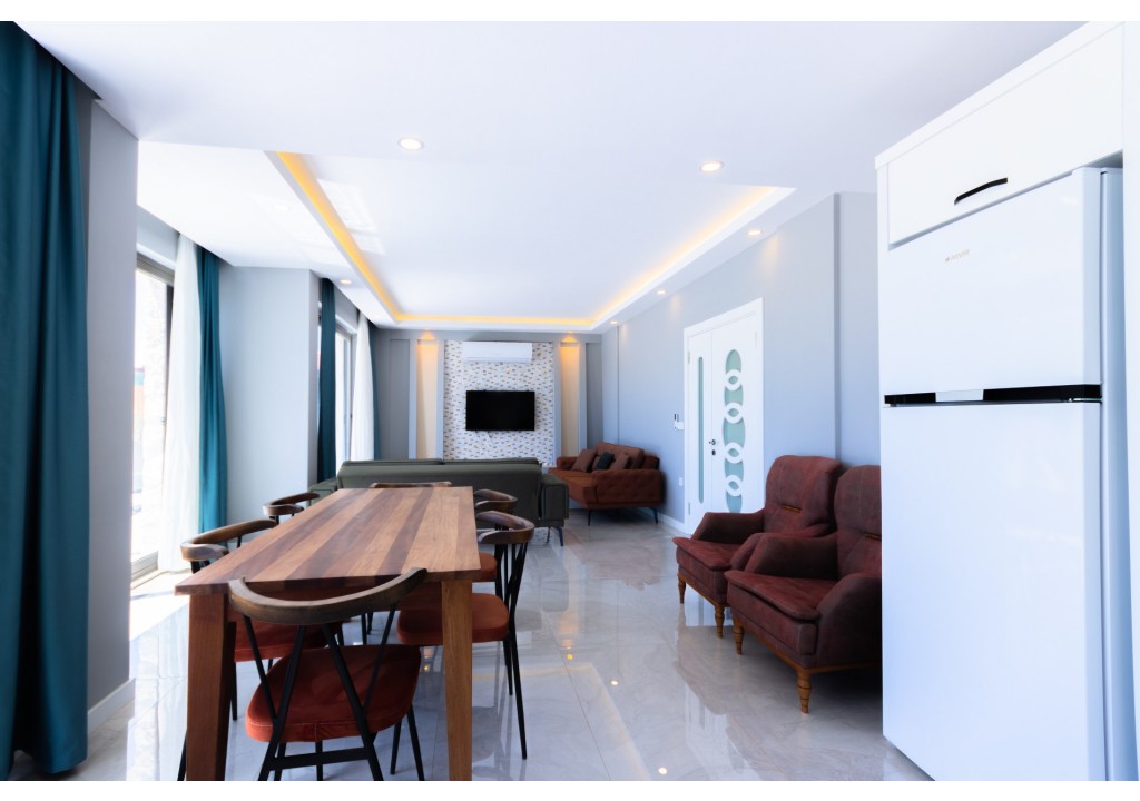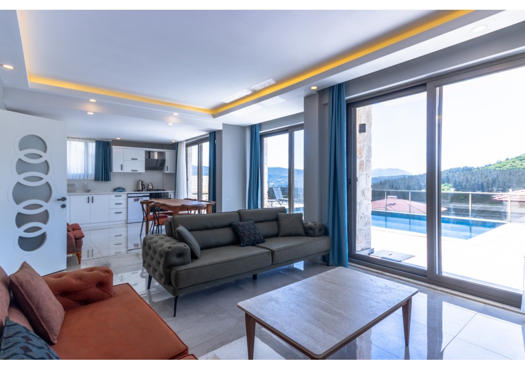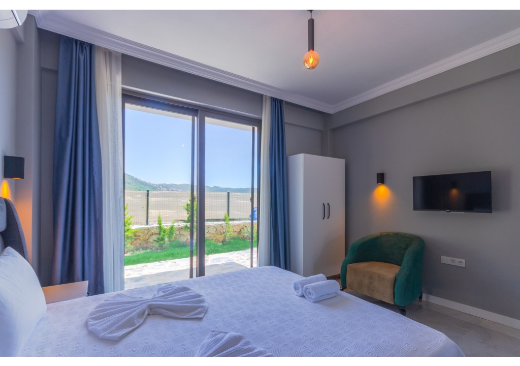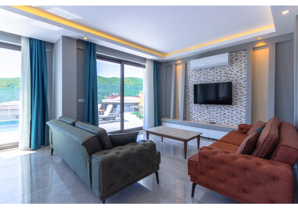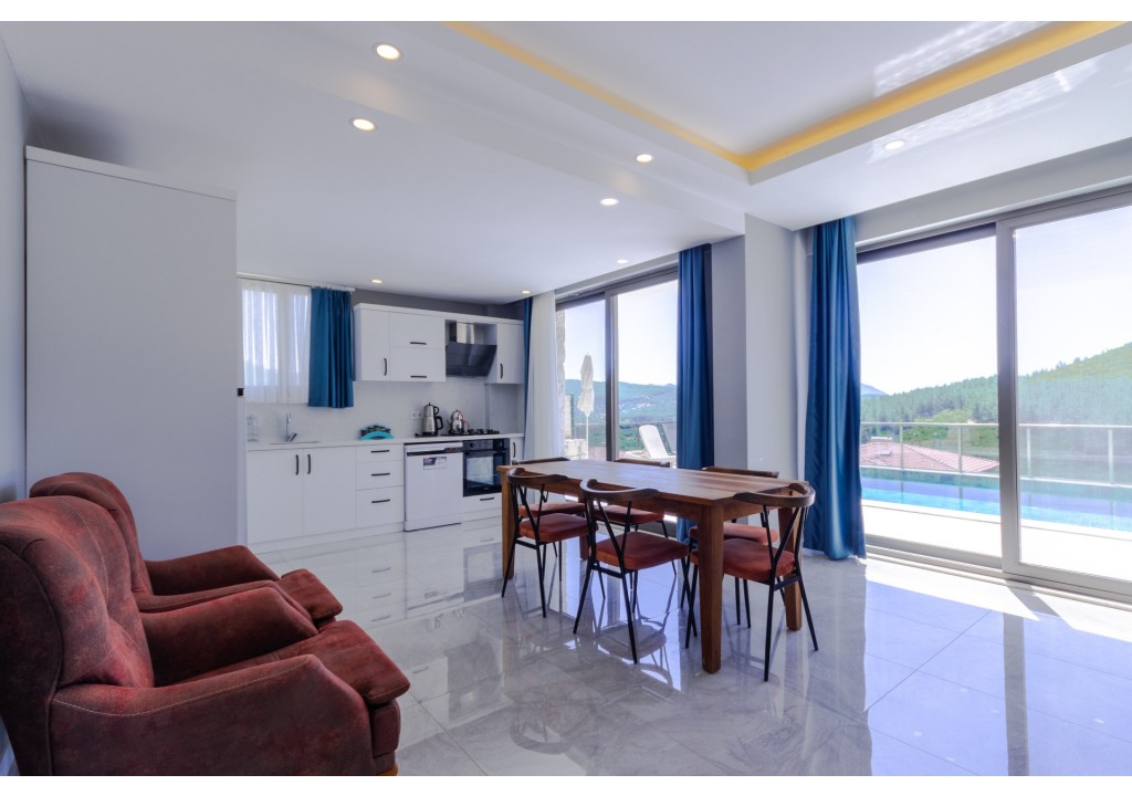 Detayları; Oturma grubu, uydu TV, klima, yemek masası ve havuz terasına çıkış bulunmaktadır.