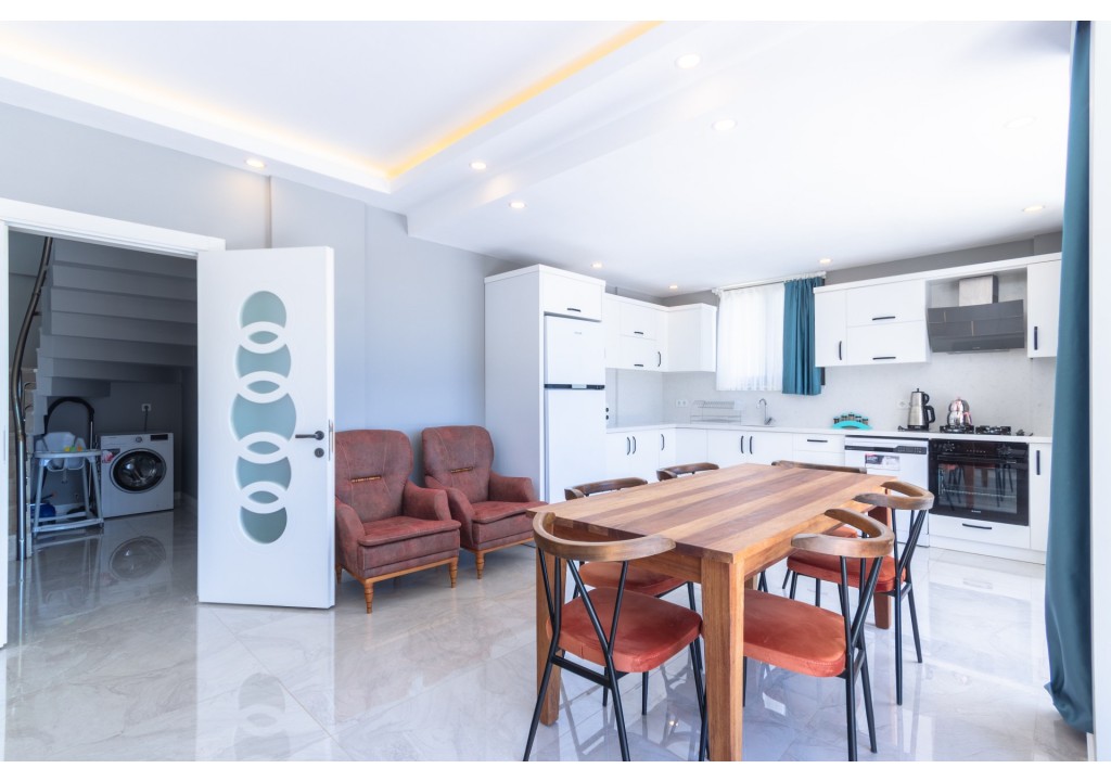 Detayları; Buzdolabı, bulaşık makinesi, fırın, 4’lü ocak, mikrodalga fırın, elektrikli su ısıtıcı, yemek takımı, tava, tencereler, çatal bıçak ve mutfak ekipmanları bulunmaktadır.