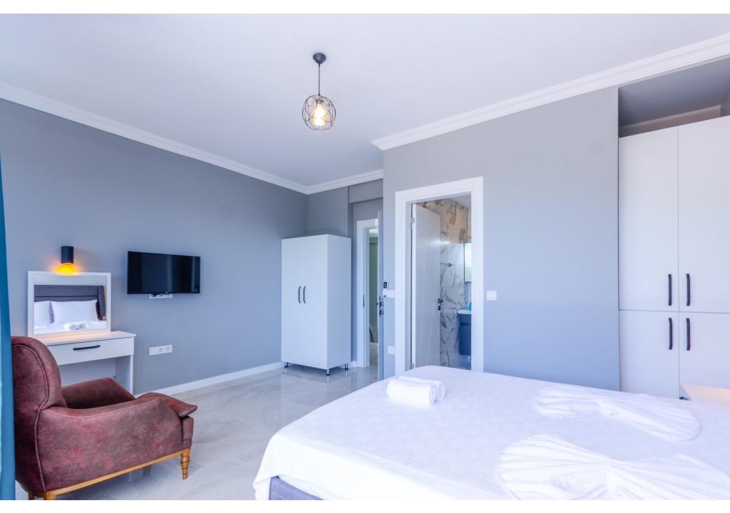 Detayları; Çift kişilik yatak, elbise dolabı, makyaj masası, klima bulunmaktadır.