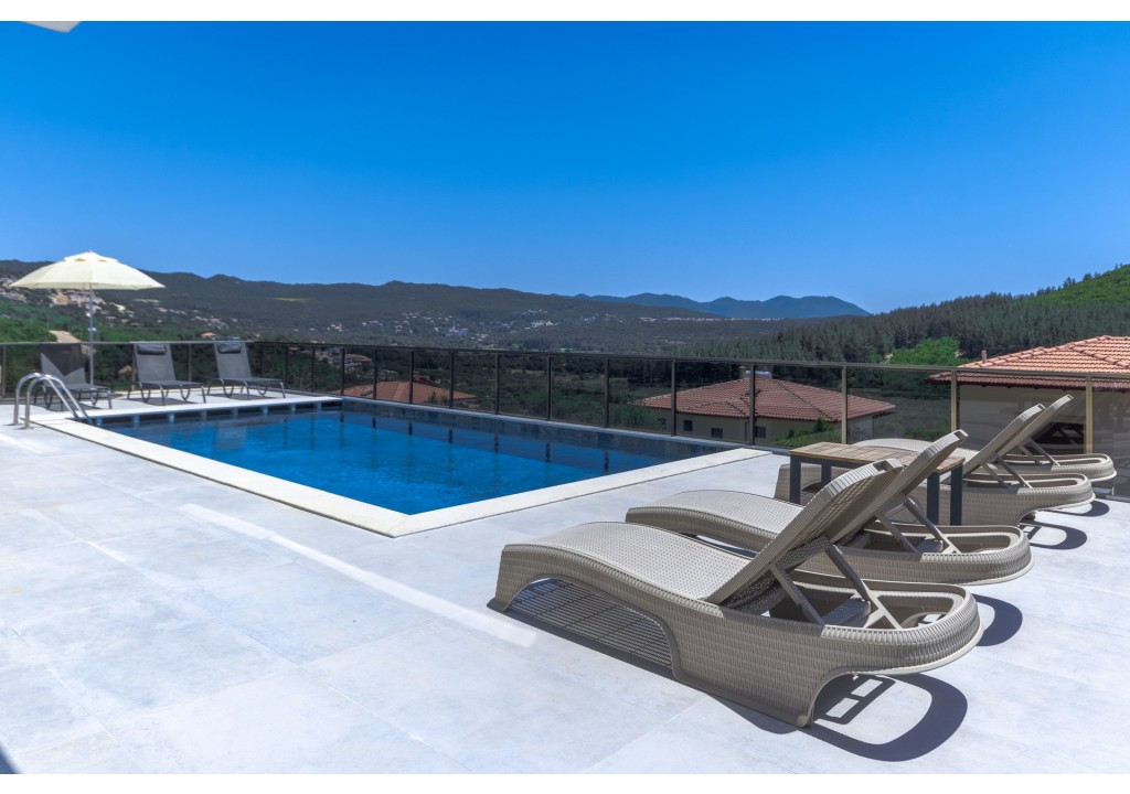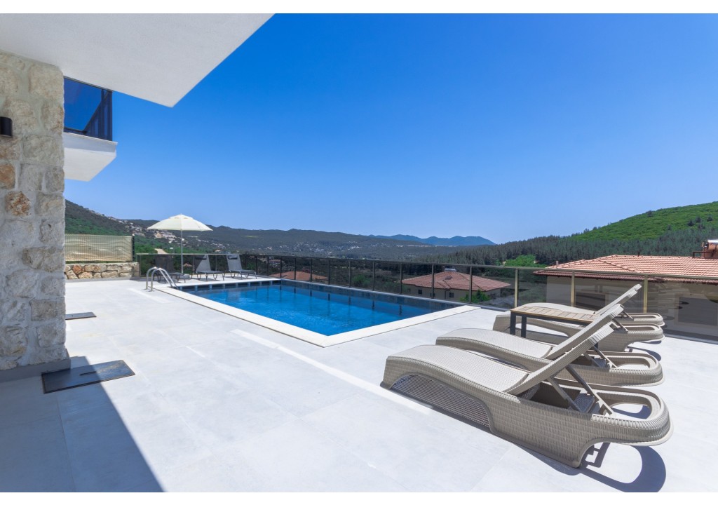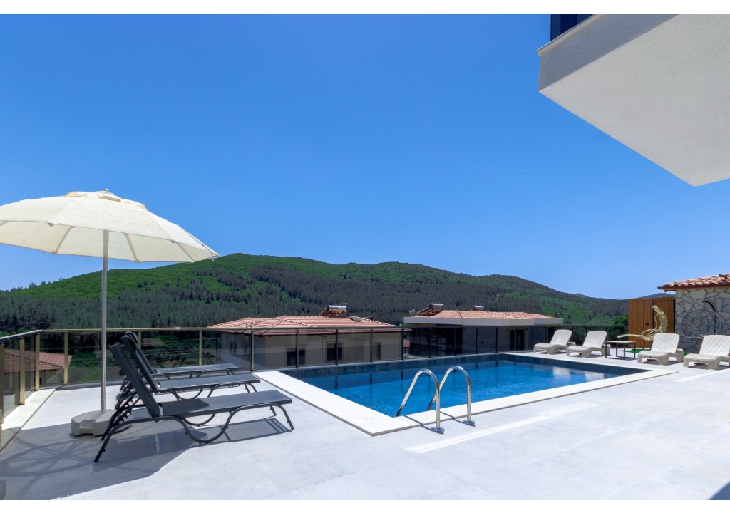 Detayları; Şezlonglar, güneş şemsiyeleri, yemek masası ve oturma grubu bulunmaktadır.
