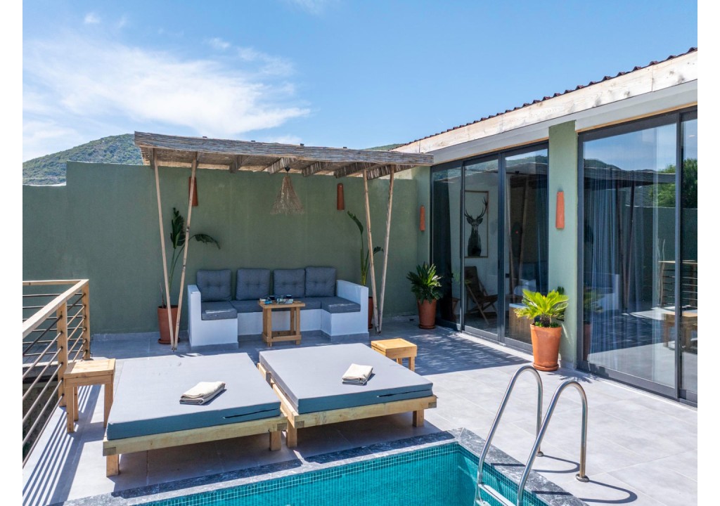 Kalkan’ın Bezirgan köyünde, yeşillikler içinde konumlanan Villa Stay 1, 2 yatak odalı ve havuz alanı dışarıdan görünmeyen muhafazakâr bir villadır. Sakin ve huzurlu bir tatil arayan çekirdek aileler ile balayı çiftleri için ideal bir konaklama seçeneği sunmaktadır.