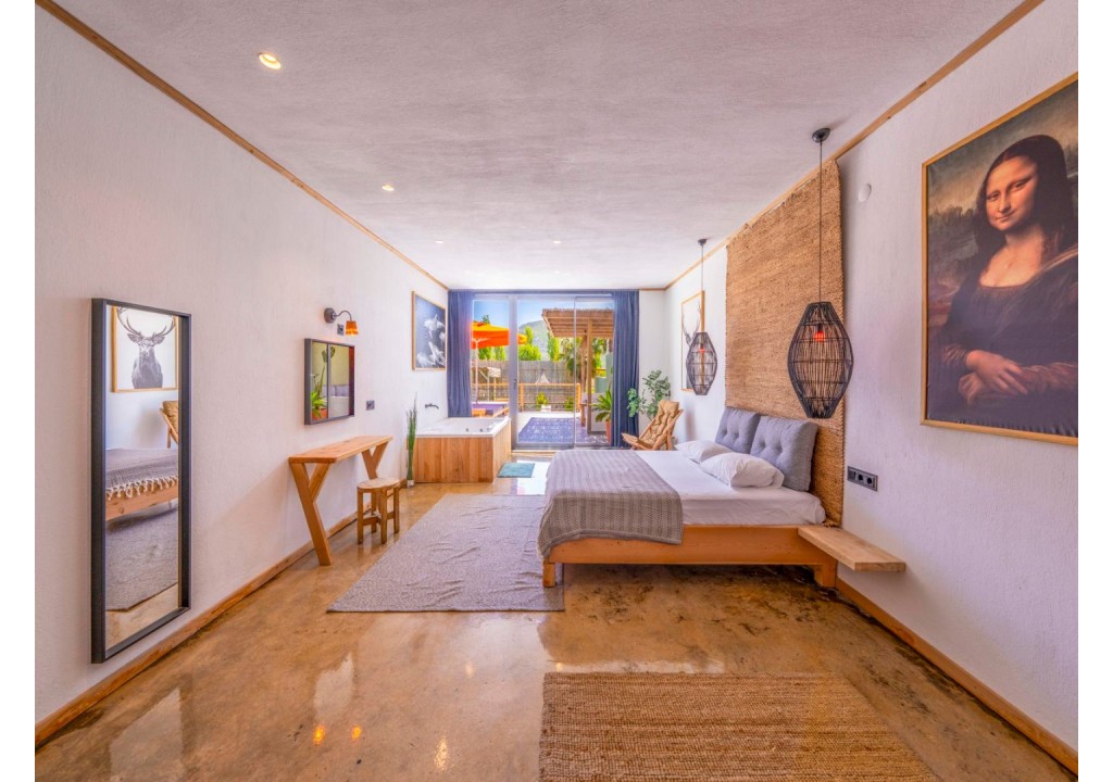 Detayları; Çift kişilik yatak, makyaj masası, komidin, klima, elbise dolabı, jakuzi, banyo ve tuvalet bulunmaktadır.