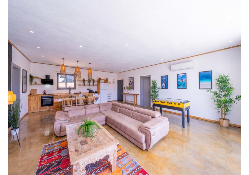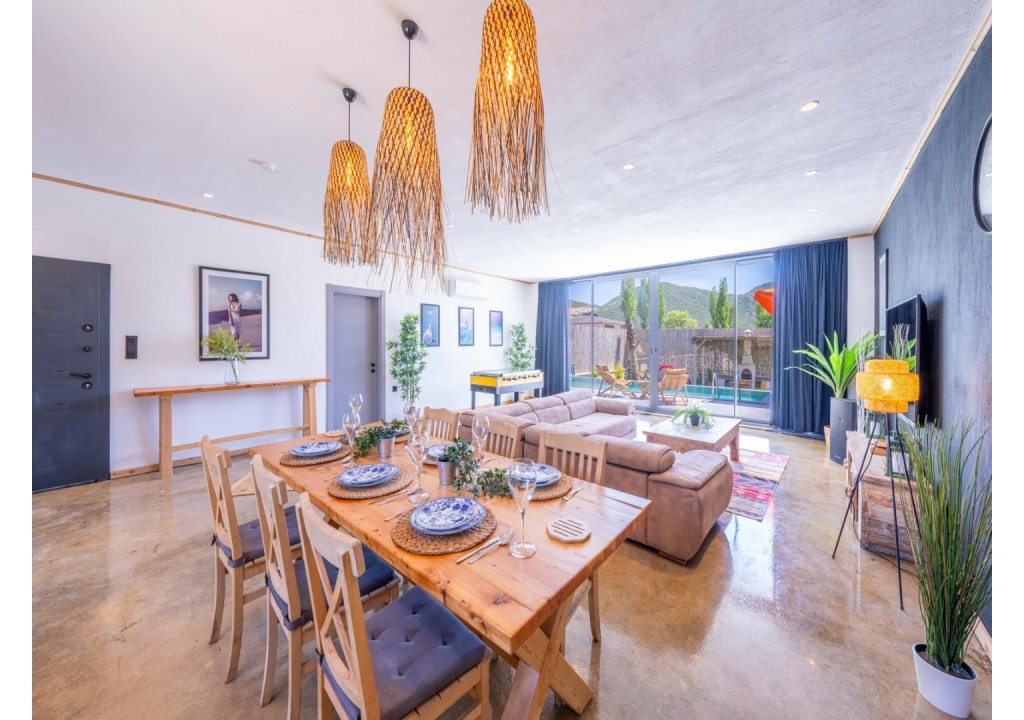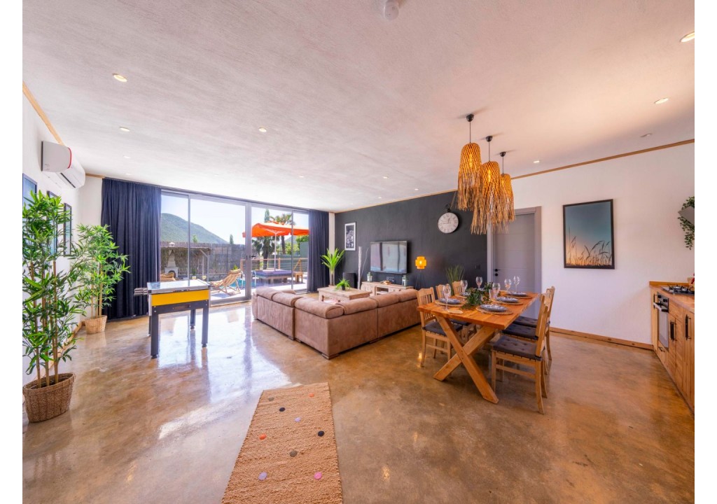 Detayları; Oturma grubu, Uydu TV (LCD), Klima, 6 kişilik yemek masası, Havuz terasına çıkış