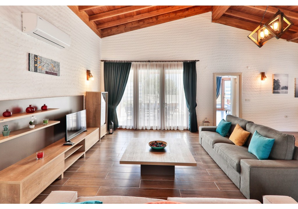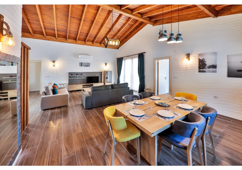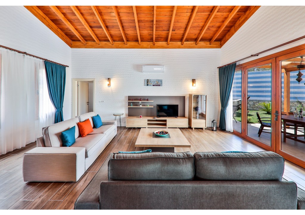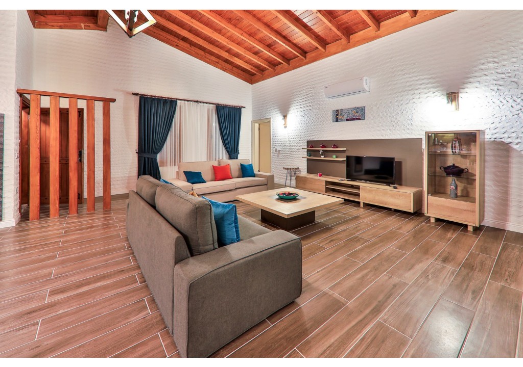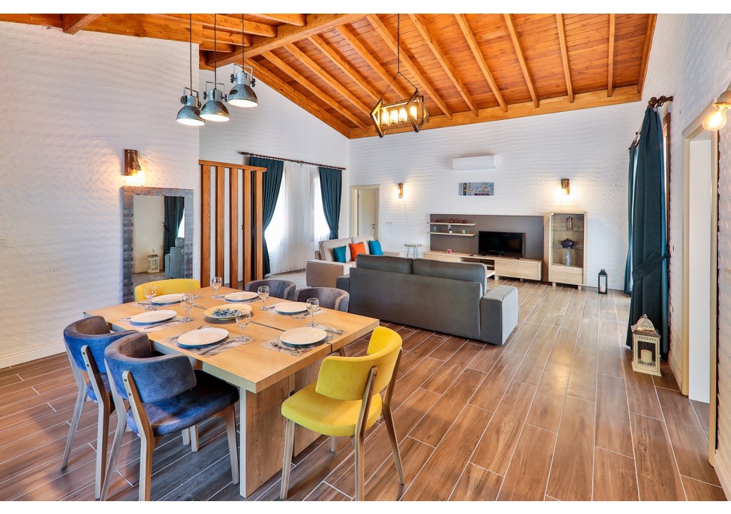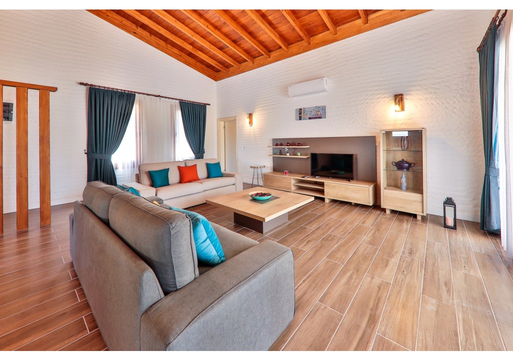 Detayları; Oturma grubu, Uydu TV (LCD), Klima, 4 kişilik yemek masası, Havuz terasına çıkış,