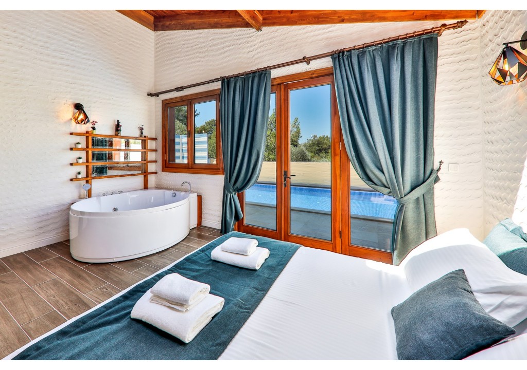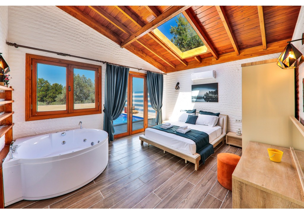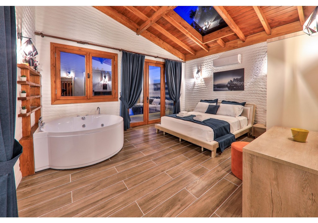 Detayları; Çift kişilik yatak makyaj masası, komodin, klima, elbise dolabı, jakuzi, banyo ve tuvalet bulunmaktadır.