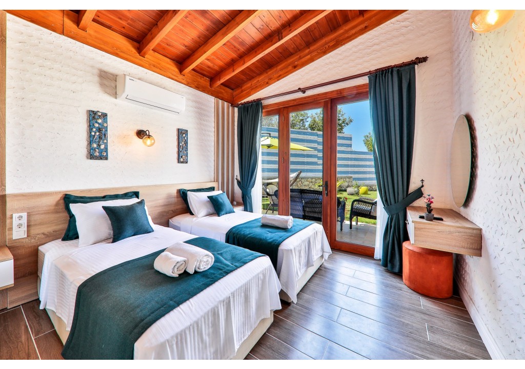 Detayları; İki adet tek kişilik yatak, makyaj masası, komodin, klima, elbise dolabı, banyo ve tuvalet bulunmaktadır.