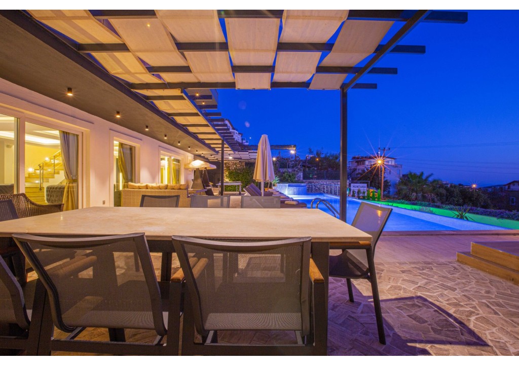 Detayları; Oturma grubu, Uydu TV (LCD), Klima, yemek masası, Havuz terasına çıkış,