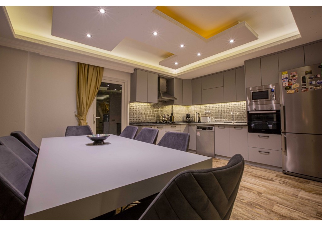 Detayları; Buz dolabı, Bulaşık makinesi, Fırın 4’lü Ocak (ankastre), Mikrodalga fırın, Elektrikli su ısıtıcı, su sebili, yemek takımı, Tava, Tencereler, Çatal bıçak vb.