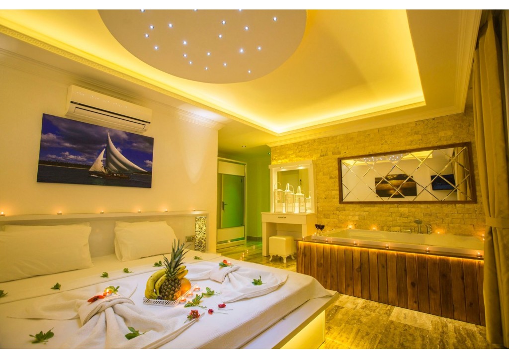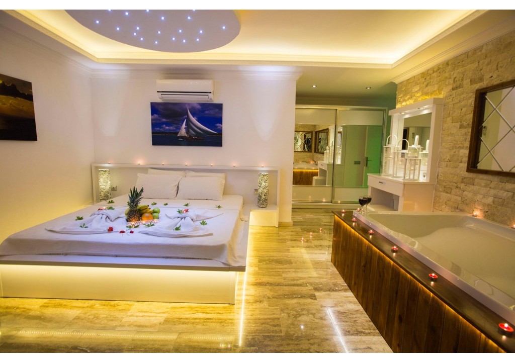 Detayları; Çift kişilik yatak, makyaj masası, komidin, klima, elbise dolabı, jakuzi, banyo ve tuvalet, bulunmaktadır.