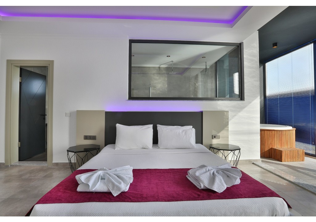 Detayları; Çift kişilik yatak, komodin, klima, elbise dolabı, jakuzi, banyo ve tuvalet bulunmaktadır.