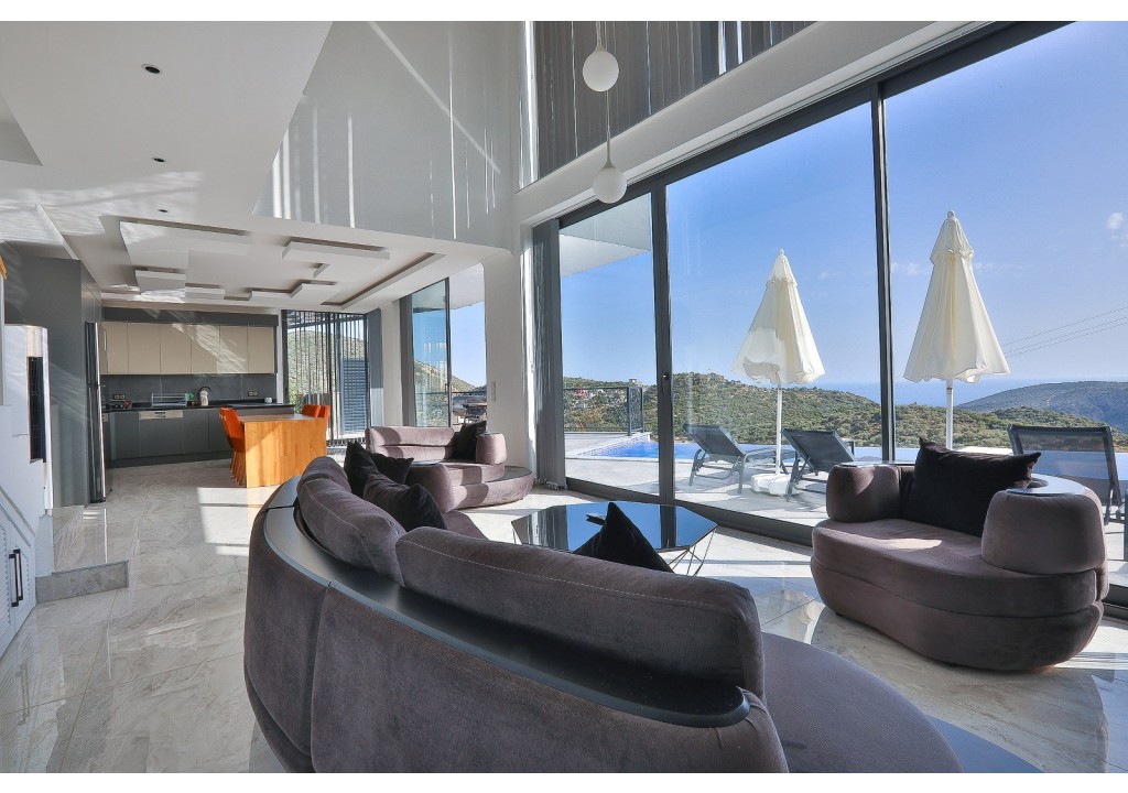Detayları; Havuz deniz ve doğa manzaralı salonda , oturma grubu, uydu TV (LCD), kablosuz internet, klima, bulunmaktadır. Salondan havuz terasına direkt çıkış bulunmaktadır.