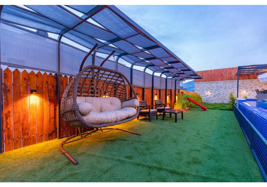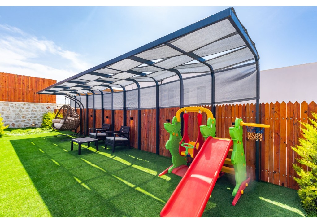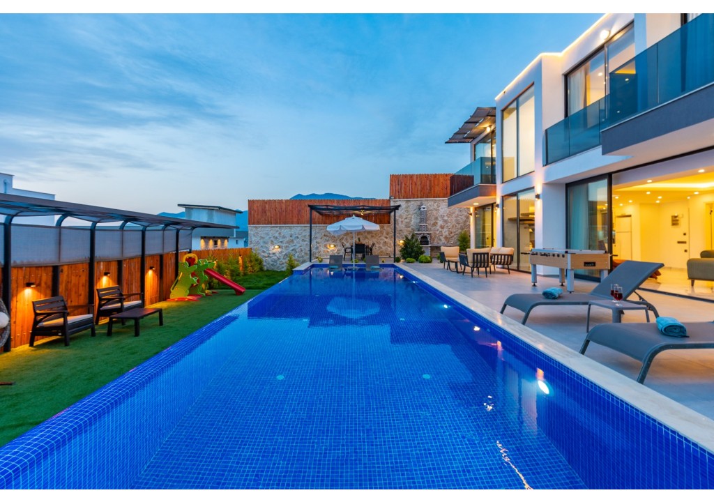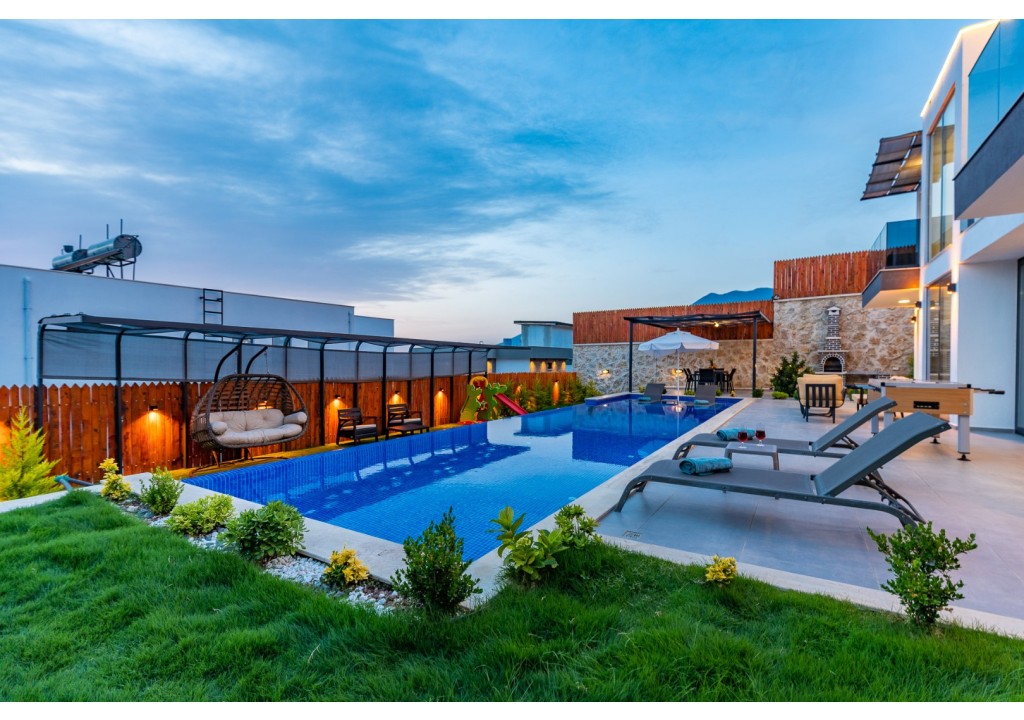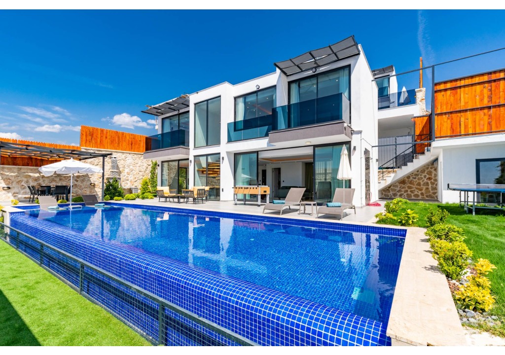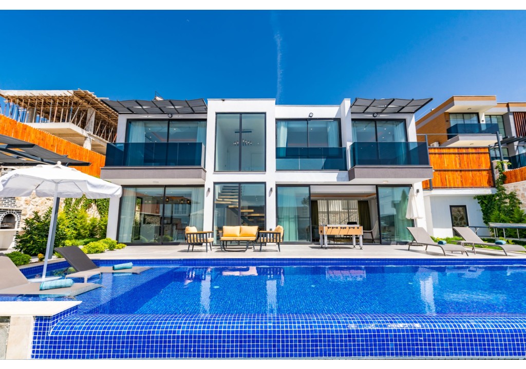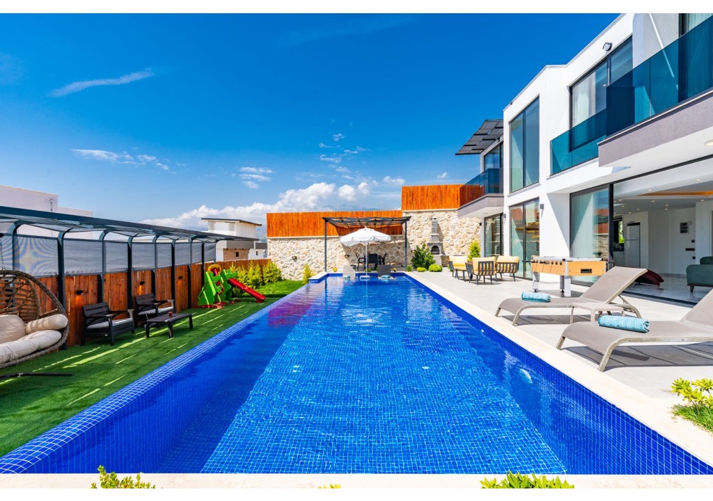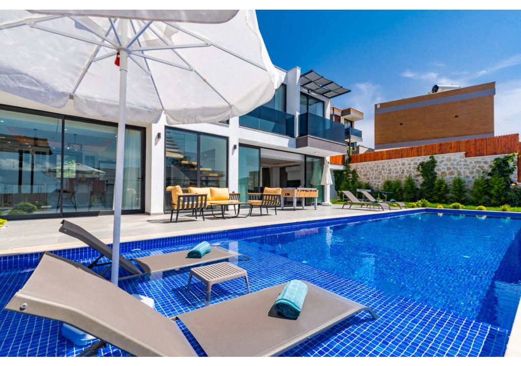NOT: Villamızın havuz terası büyük ölçüde korunaklıdır; ancak diğer villalara kıyasla görünürlük oranı daha yüksek olup korunaklılık seviyesi nispeten daha düşüktür. Havuz çevresinde herhangi bir perdeleme sistemi bulunmamaktadır. Bu nedenle tam korunaklı bir villa tercih eden misafirlerimiz için uygun değildir.