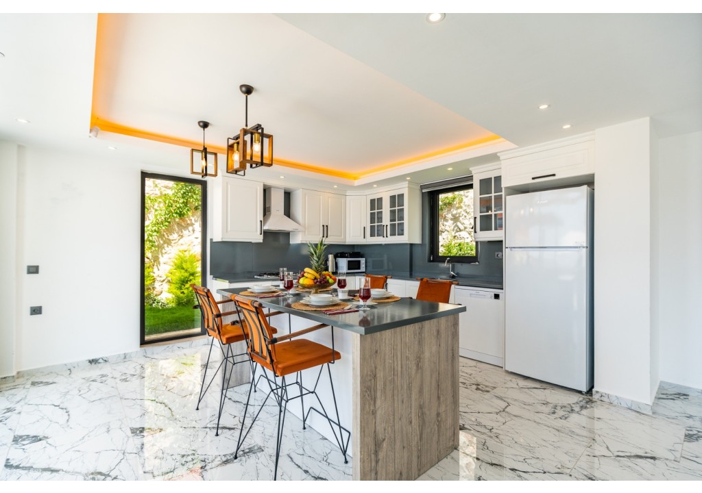 Detayları; Buzdolabı, bulaşık makinesi, fırın, 4’lü ocak, mikrodalga fırın, elektrikli su ısıtıcı, yemek takımı, tava, tencereler, çatal bıçak ve mutfak ekipmanları bulunmaktadır.