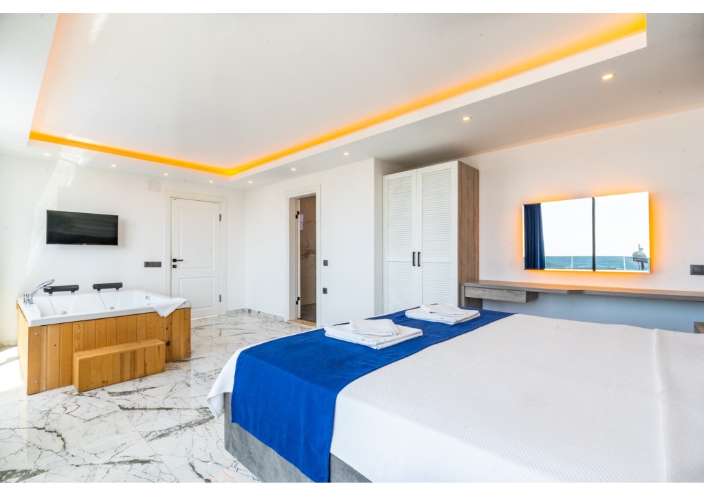 Detayları; Çift kişilik yatak, makyaj masası, komidin, klima, elbise dolabı, jakuzi, banyo ve tuvalet bulunmaktadır.