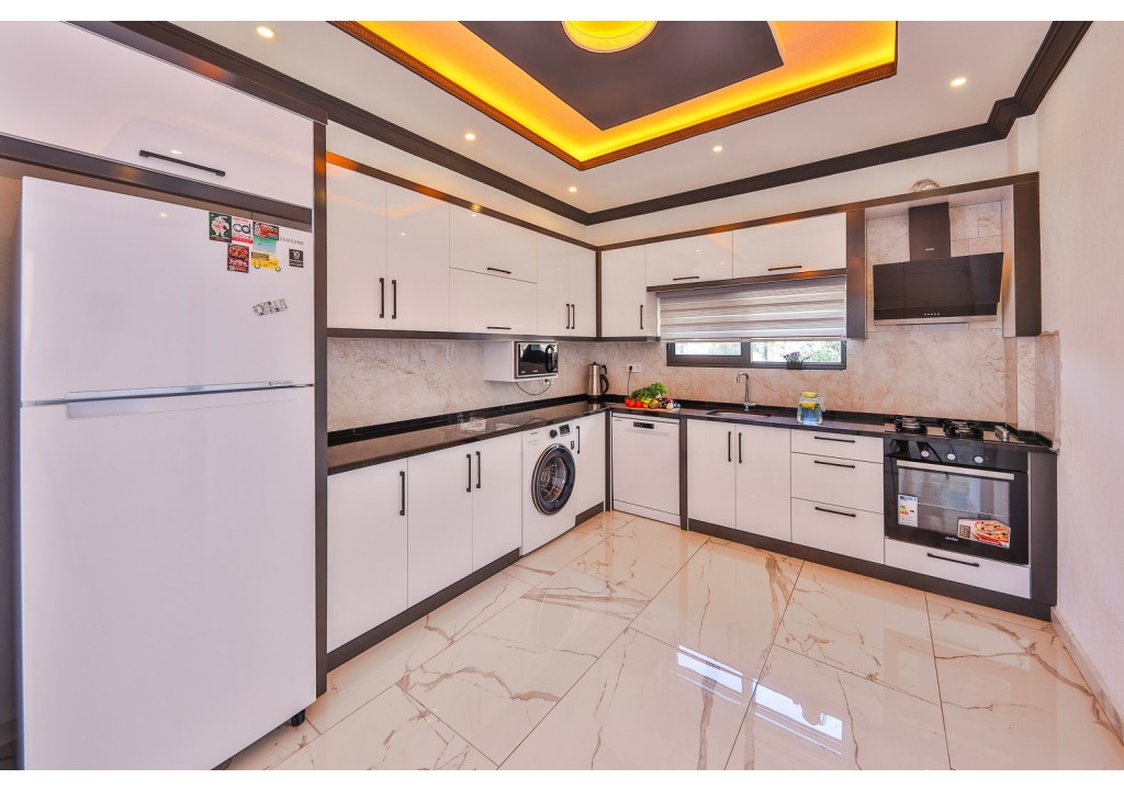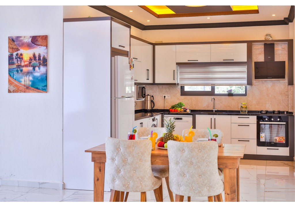 Detayları; Buz dolabı, Bulaşık makinesi, Fırın 4’lü Ocak (ankastre), Mikrodalga fırın, Elektrikli su ısıtıcı, 4 kişilik yemek takımı, Tava, Tencereler, Çatal bıçak vb.