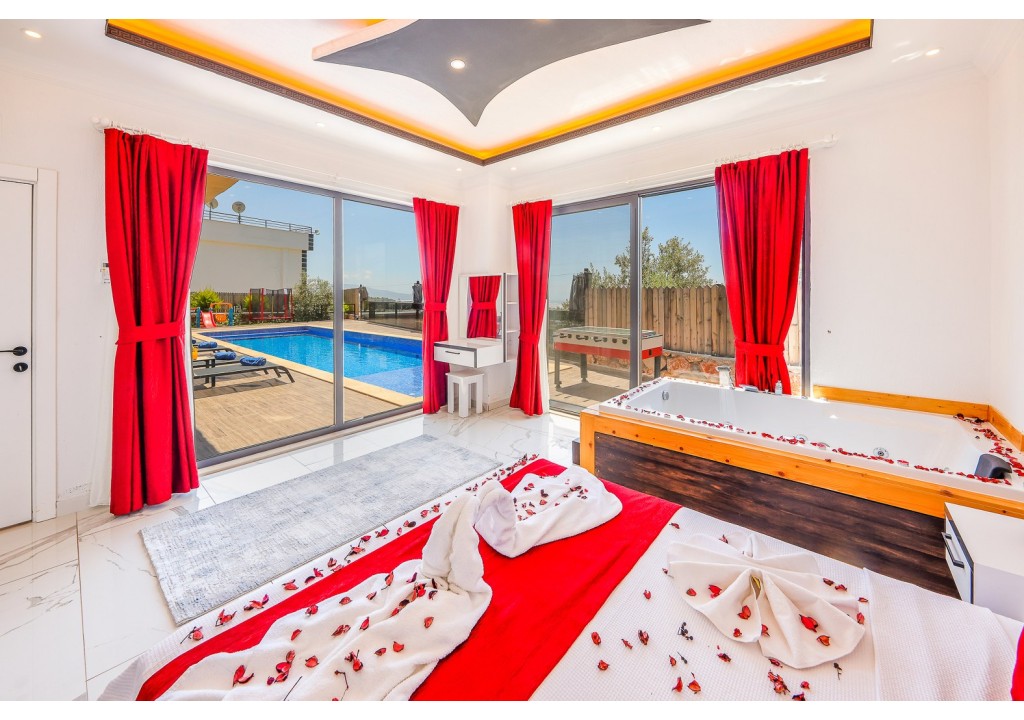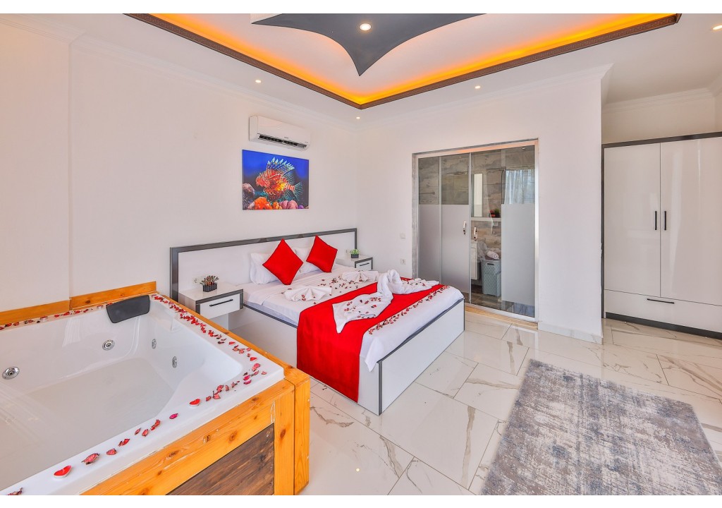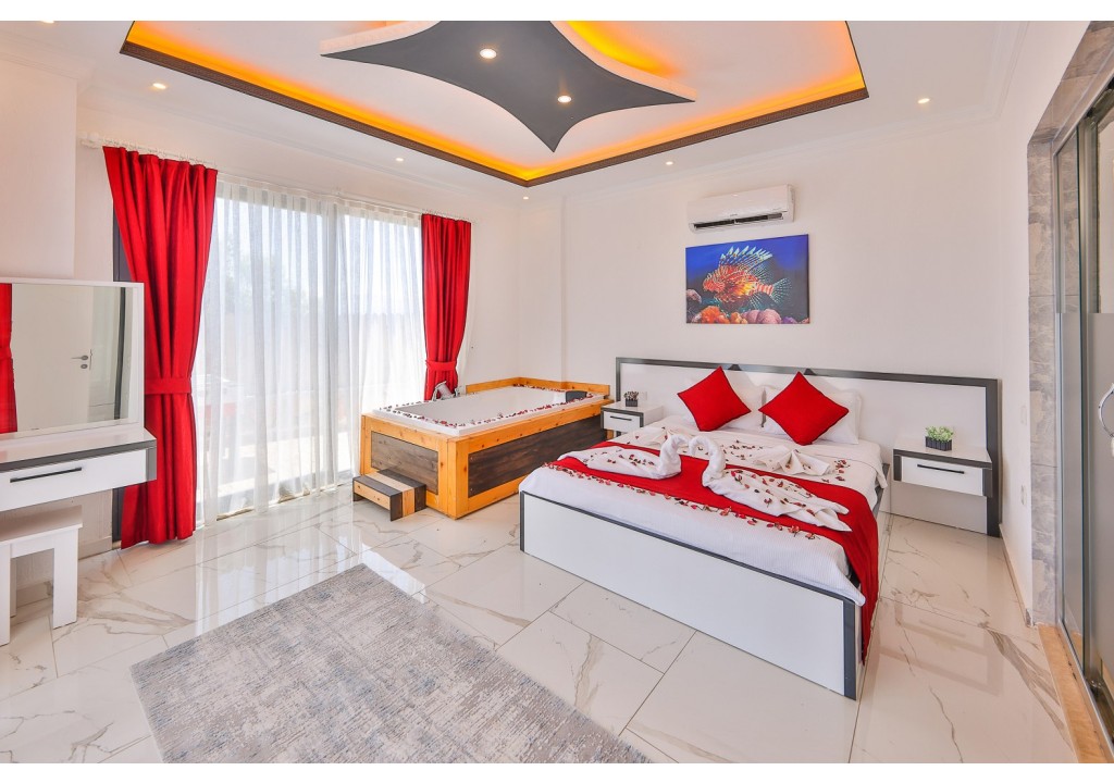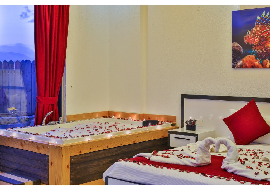 Detayları; Çift kişilik yatak, makyaj masası, komidin, klima, elbise dolabı, jakuzi, banyo ve tuvalet bulunmaktadır.