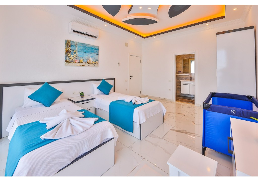 Detayları; İki adet tek kişilik yatak, makyaj masası, komidin, klima, elbise dolabı, banyo ve tuvalet bulunmaktadır.