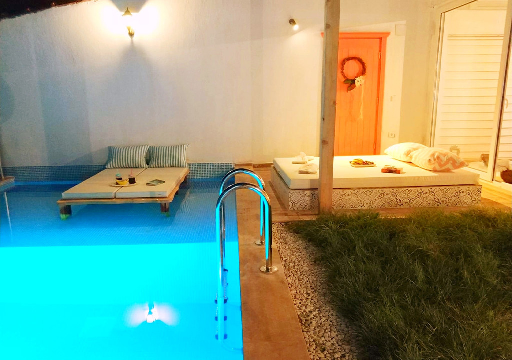 HAVUZ KATI TERASI: Güneşlenme alanı, özel havuz.