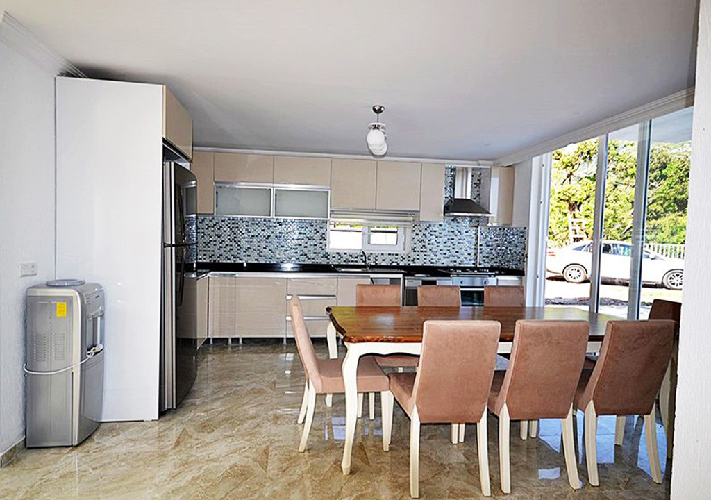 Detayları; Buz dolabı, Bulaşık makinesi, Fırın 4’lü Ocak (ankastre), Mikrodalga fırın, Elektrikli su ısıtıcı, su sebili, 8 kişilik yemek takımı, Tava, Tencereler, Çatal bıçak vb.